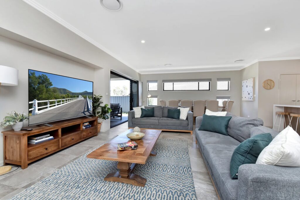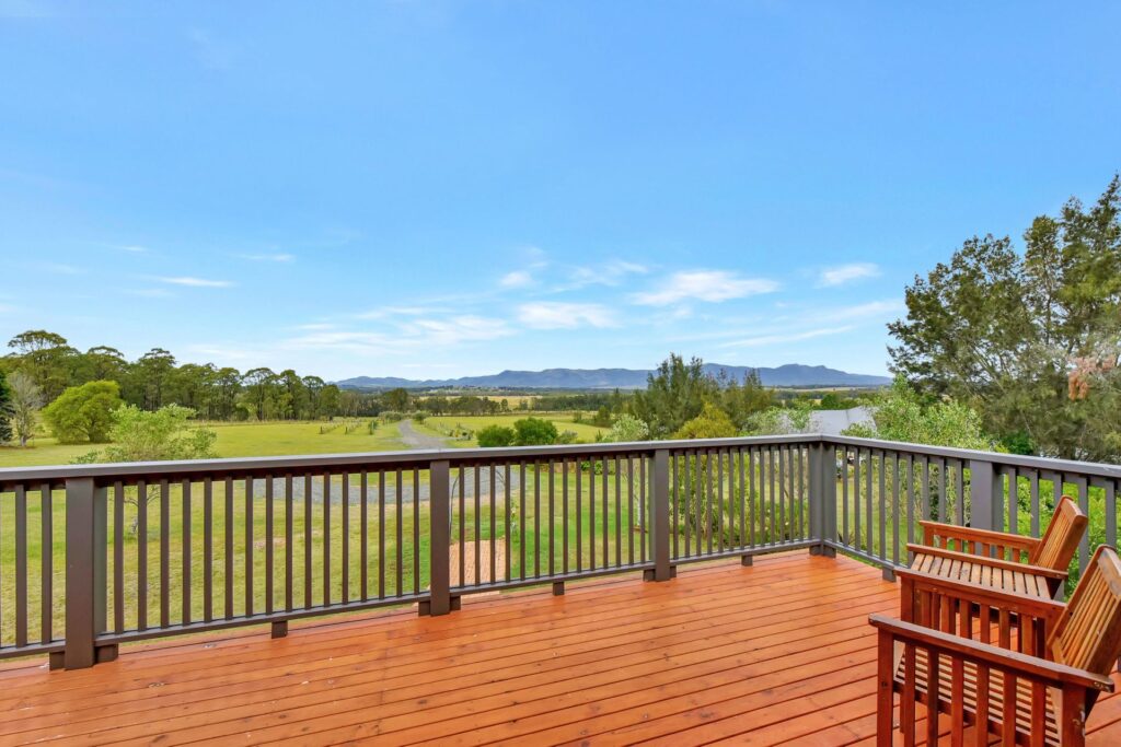 Delightful 5-bedroom Hunter Valley retreat in Bellbird with covered alfresco dining area, featuring multiple living spaces and spectacular hillside views.