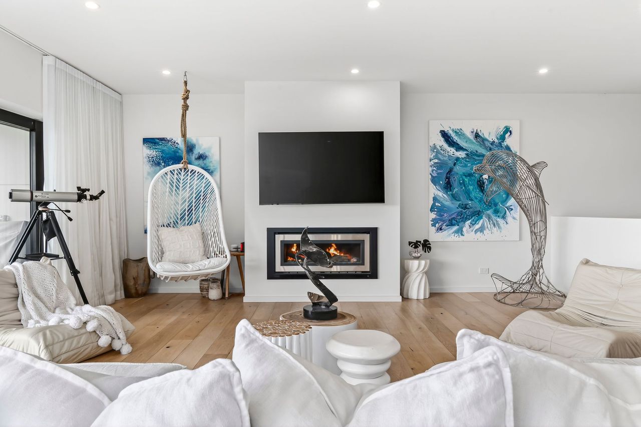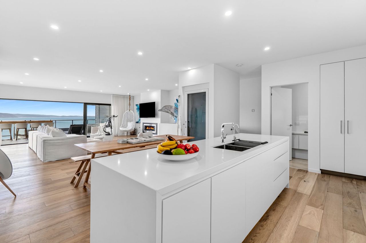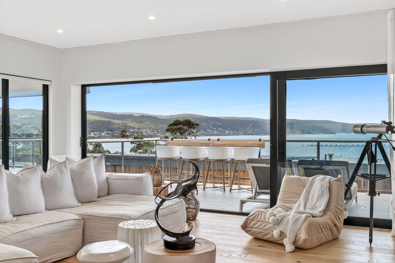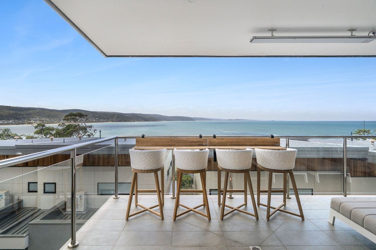 Welcome to 9 Oceania, a beautifully appointed coastal retreat in Lorne set across three spacious levels. Designed for both comfort and convenience, the home features multiple living areas, a cosy gas fireplace upstairs, and an internal lift for easy access throughout. The light-filled interiors and elevated position create a relaxed yet refined atmosphere, perfect for unwinding in style.
