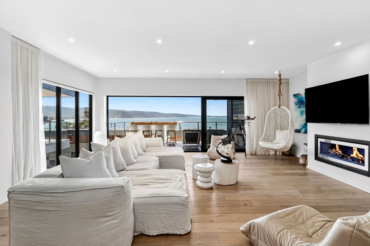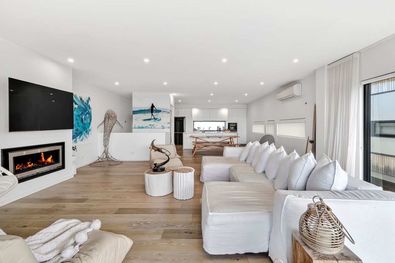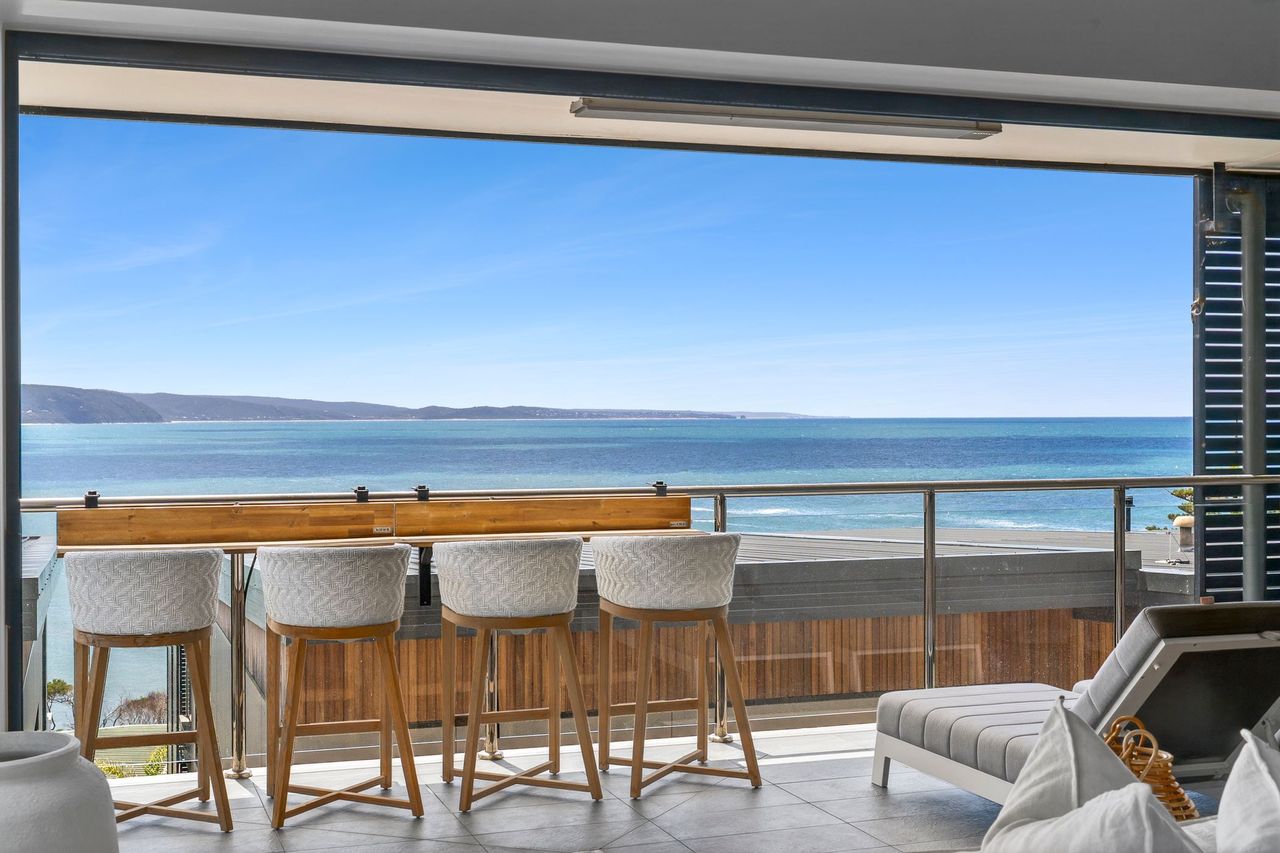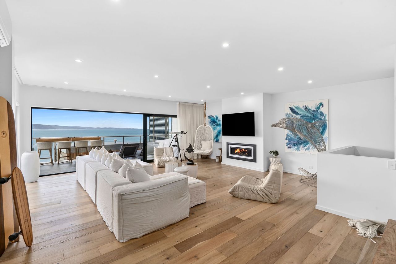 Welcome to 9 Oceania, a beautifully appointed coastal retreat in Lorne set across three spacious levels. Designed for both comfort and convenience, the home features multiple living areas, a cosy gas fireplace upstairs, and an internal lift for easy access throughout. The light-filled interiors and elevated position create a relaxed yet refined atmosphere, perfect for unwinding in style.