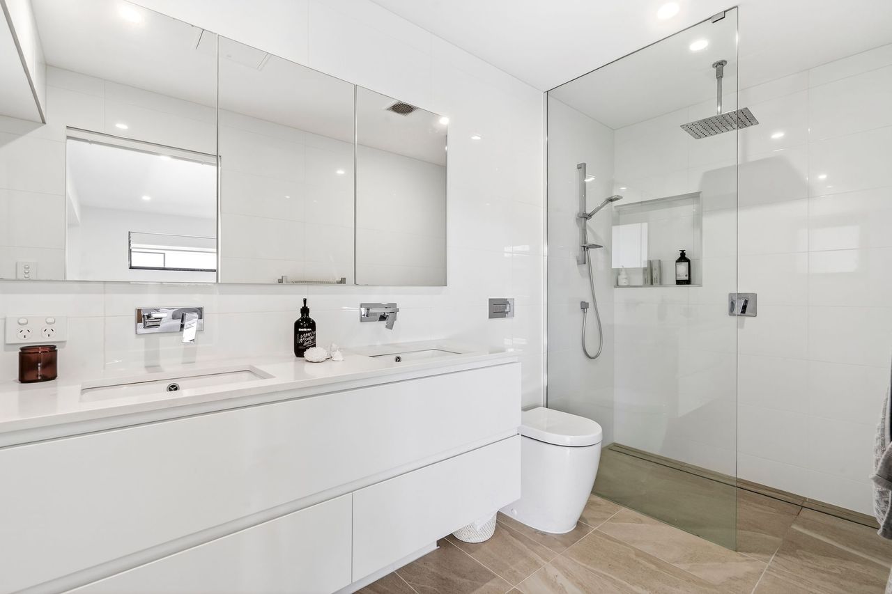 Bathroom 2 (Ensuite to Bedroom 3): Shower, Toilet, Vanity