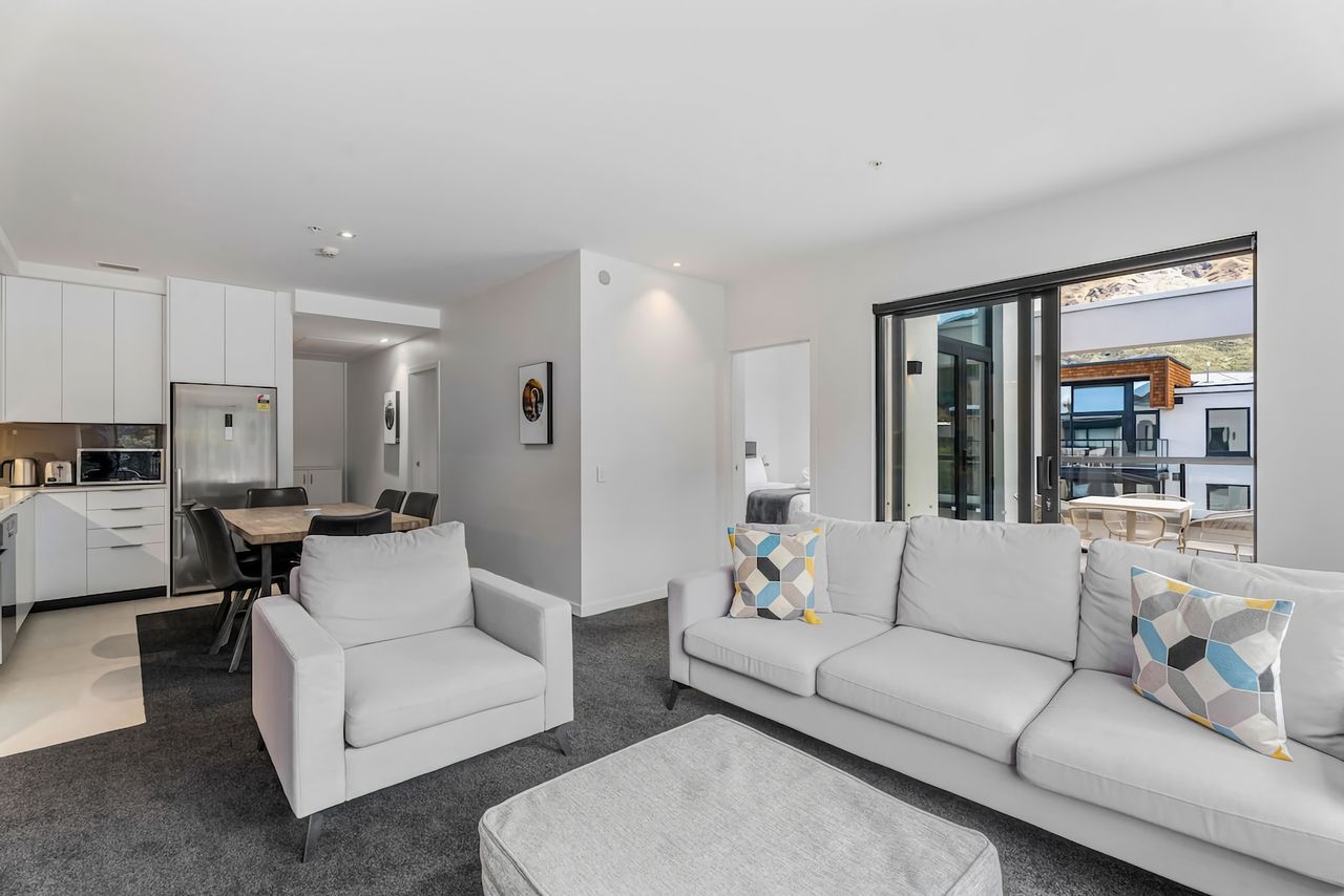 Nestled at the base of Coronet Peak in Arthur’s Point, The Residence du Parc are your perfect home away from home whilst visiting Queenstown, New Zealand. This north-facing, sunny apartment is modern, elegantly decorated and makes for the perfect retreat after a long day exploring.2-bedroom, 2-bathroom Penthouse Apartment in sunny Arthur’s Point. Perfect for all group dynamics, with a pull-out/foldaway bed for your fifth guest.
