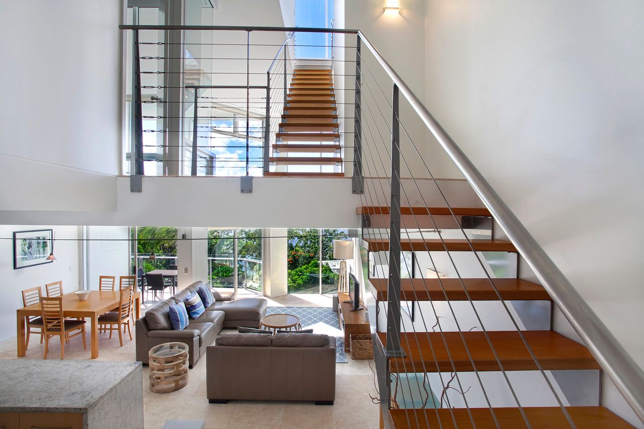 The Location – What a superb sunny North aspect position! This modern, spacious and beautifully furnished Noosa accommodation has a large private roof top terrace and breathtaking views across Laguna Bay & Little Cove Beach. Only a short walk to Noosa’s Hastings Street and Noosa National Park you are guaranteed luxurious holiday accommodation Noosa which is sure to become a firm favorite for your future Noosa holidays.