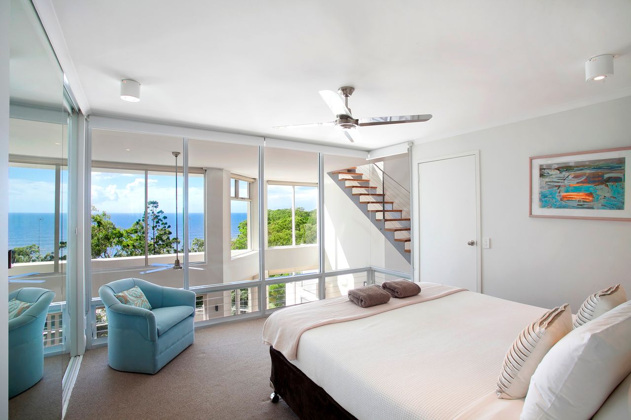 The Unit – This property offers 3 Bedrooms (1 Queen, 4 singles ) and 2 Bathrooms with penthouse. With its multi-level structure, you can view the Noosa Beach from Balcony, terrace and from the main bedroom.