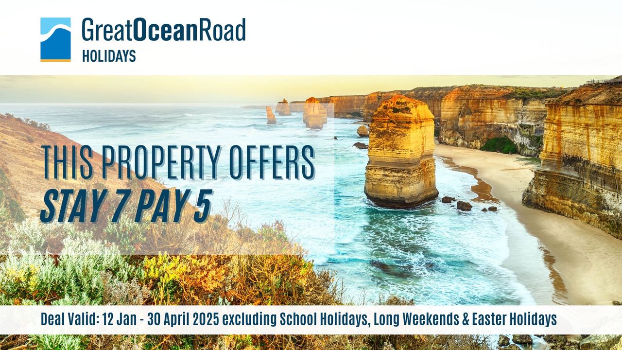 This property offers a STAY 7 PAY 5 deal from 12 January to 30 April 2025, excluding School Holidays, Long Weekends, and Easter Holidays.