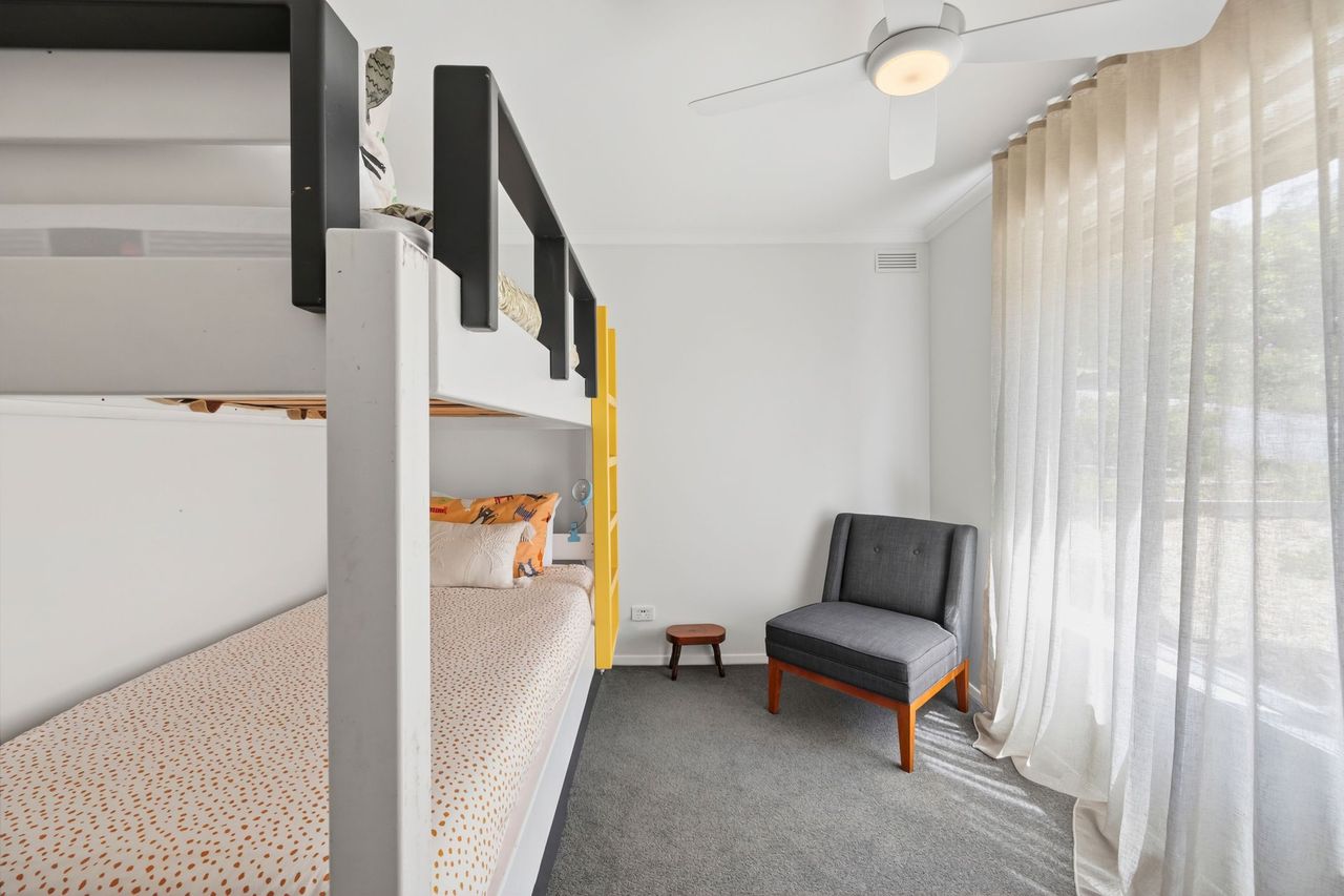 Annelise boasts a cozy and inviting interior, featuring a well-equipped kitchen with modern amenities, ensuring convenience during your stay. The open-plan living area is designed for relaxation, with comfortable furnishings and ample natural light. Each of the three bedrooms is thoughtfully furnished, with a queen-sized bed and a set of king single bunk beds, providing a restful environment for all guests.