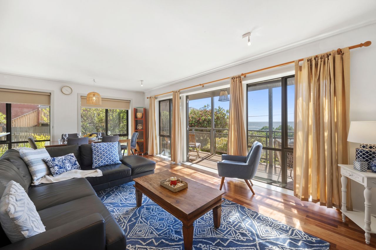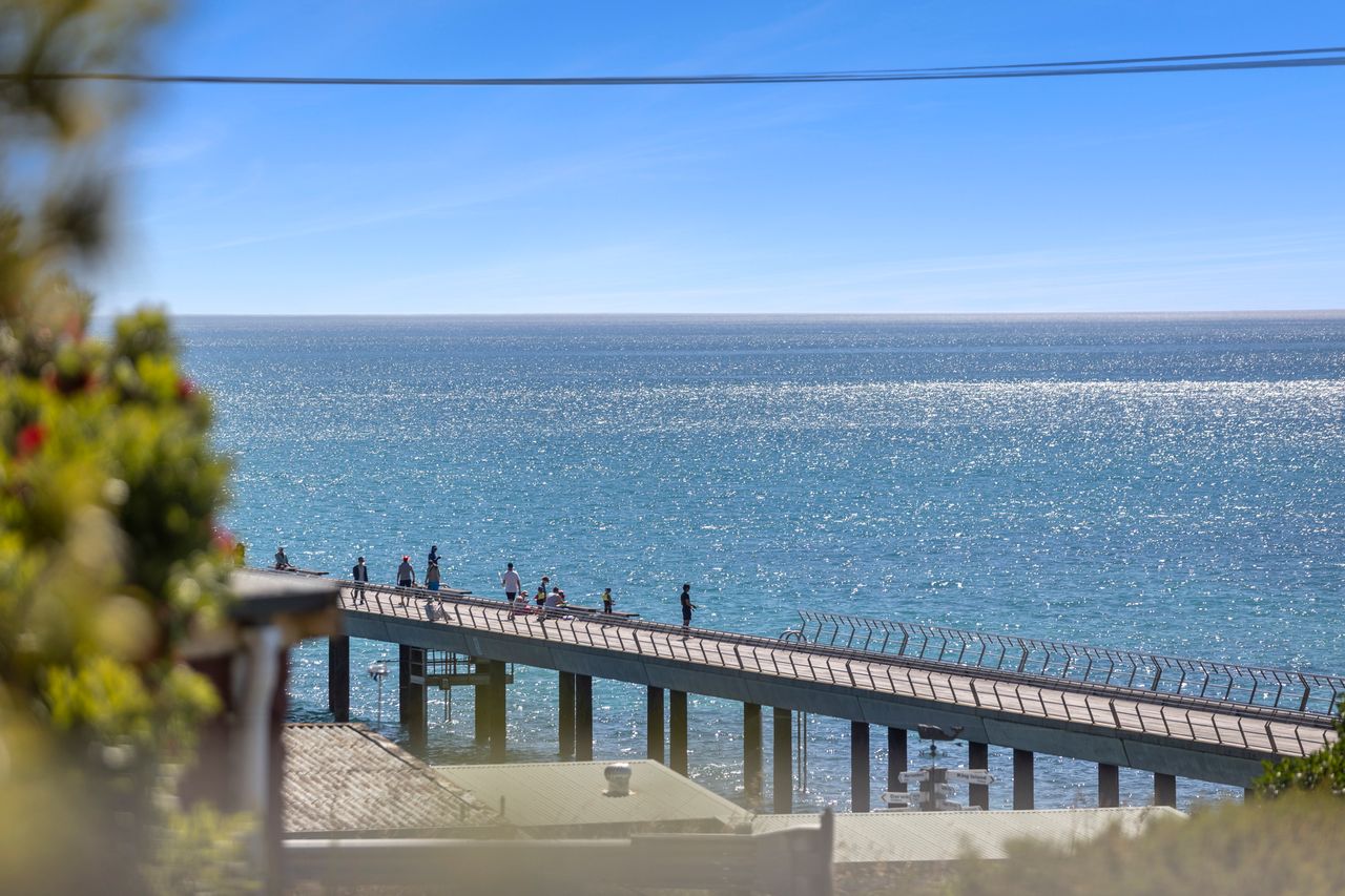 Apartment 5 ,Pacific Apartments. Set across 2 levels with light filled open plan living upstairs and two bedrooms downstairs. Recently renovated, this apartment enjoys stunning ocean views across the pier and beyond.