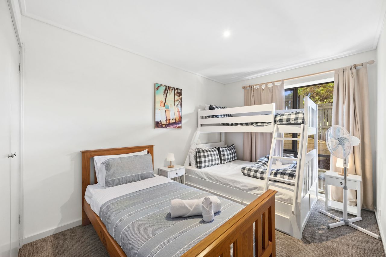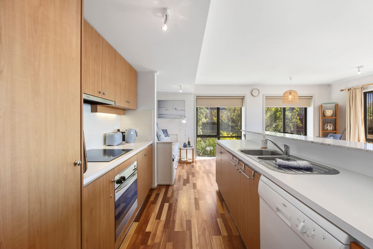 A short flat walk to the centre of Lorne. Fully serviced, complete with linen, smart TV, fully functional kitchen and high speed Wi-Fi. Other features include gas BBQ, street access via ground level courtyard and undercover parking. NO SPLIT SYSTEM at the moment