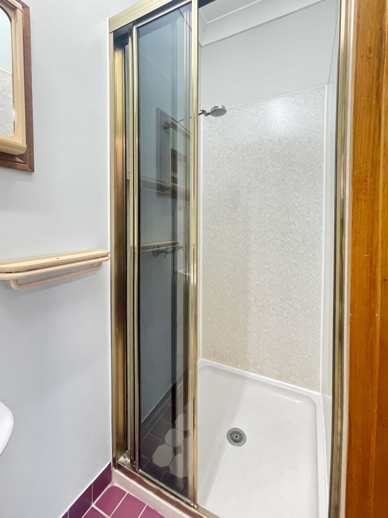 Bedroom 1 – Queen bed, TV and ensuite with shower and toilet