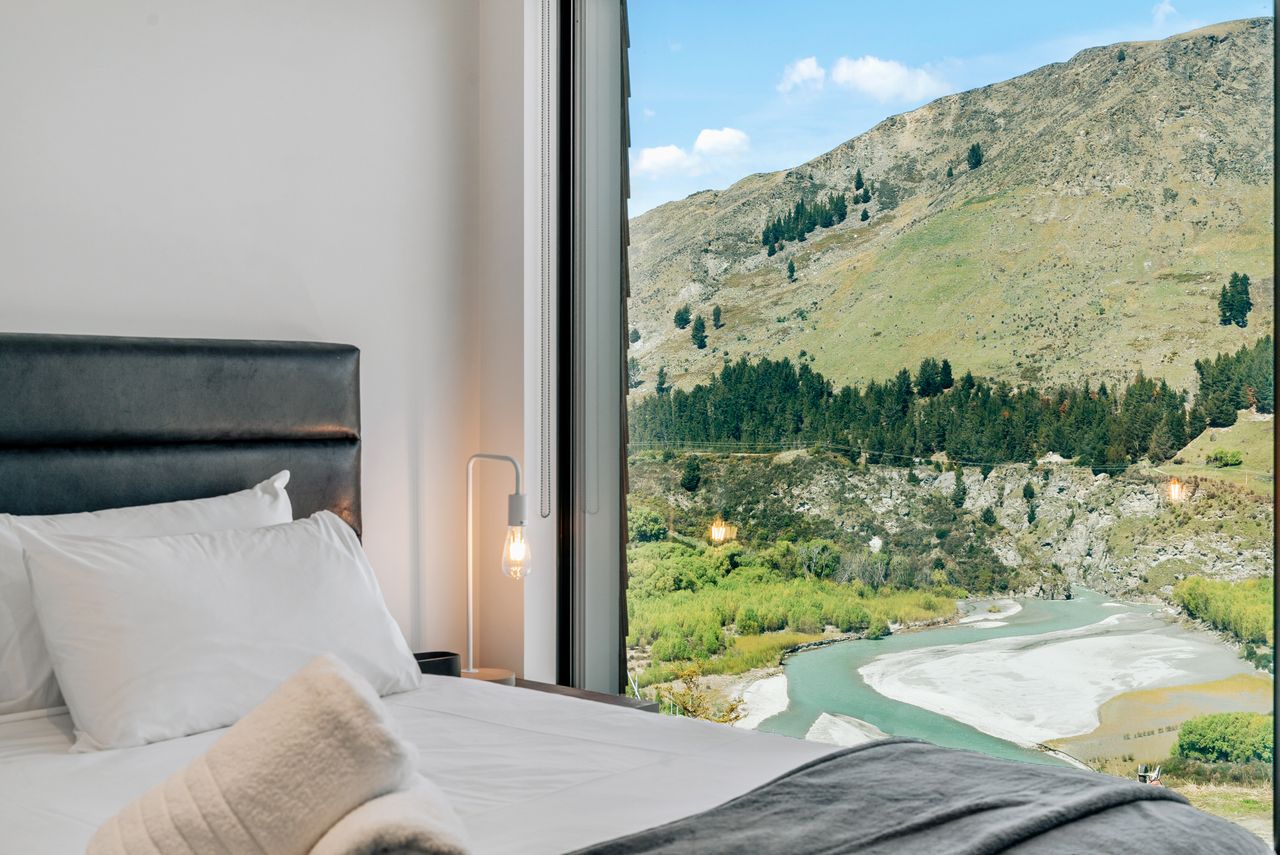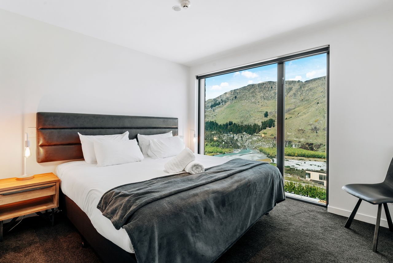 These 2-bedroom River View apartments have all the home comforts one could possibly desire, providing the perfect location for those interested in exploring this stunning region throughout the day and retreating to tranquillity in the evenings. Whilst predominantly north-facing, the bedrooms afford some views south towards Queenstown Hill and the Shotover River.