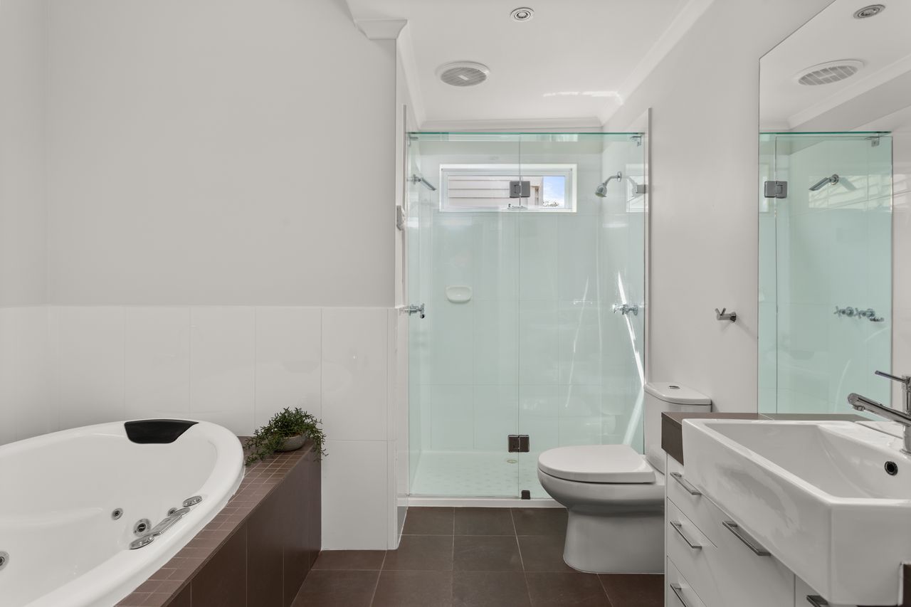 Bathroom 1 (Ensuite): spa bath, walk-in shower, single vanity, toilet