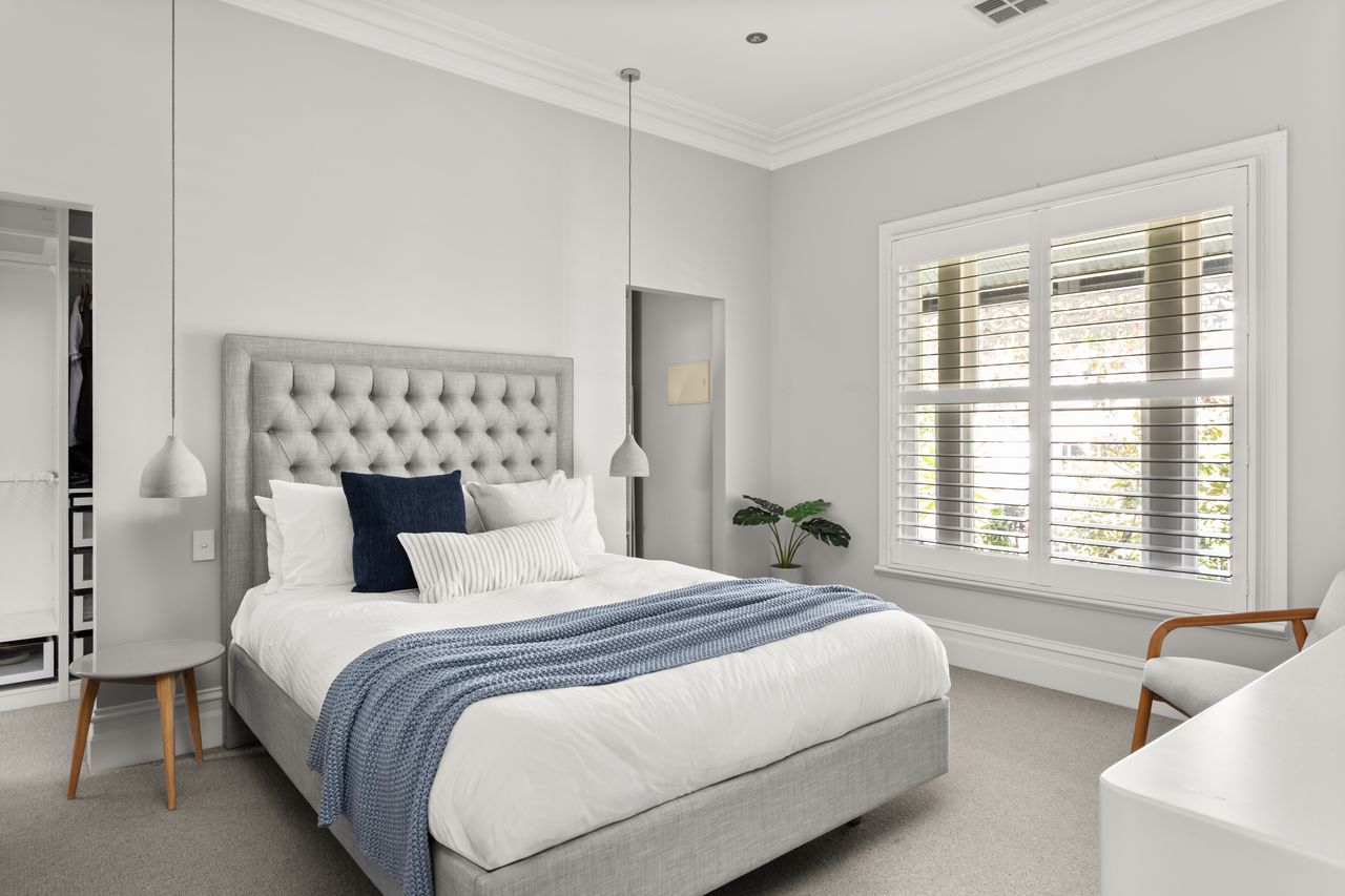 Bedroom 1 (main bedroom): queen bed, walk-in wardrobe, plantation shutters, ensuite