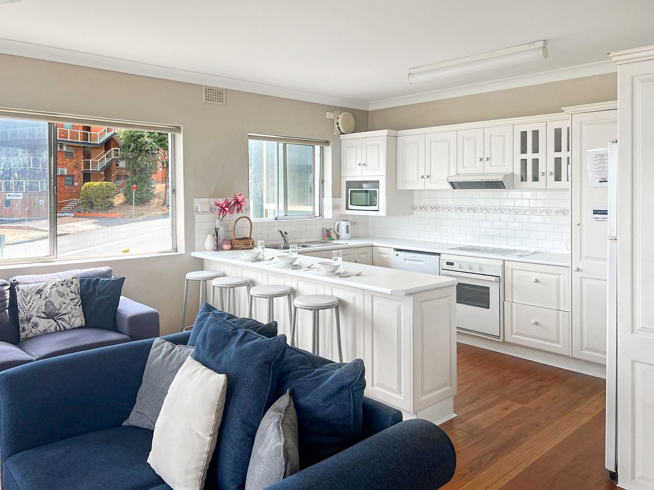 Step out from your first floor apartment, cross the road and you’re on the beach! Little Nelson Bay Beach offers calm water swimming, picnics and BBQ’s, and just 200m along the coast is Fly Point, the aquatic sanctuary known for its amazing snorkeling and scuba diving (best at high tide). Follow along the foreshore less than 1km in the opposite direction into town for cafes, restaurants, boutique shopping and the marina, where dolphin watch cruises depart daily. You won’t need the car!