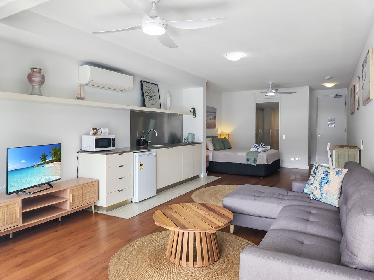 This professionally managed studio, brought to you by Best of Magnetic, offers a cozy lounge area with a TV, ensuring you have a comfortable space to unwind after a day of exploring Nelly Bay and beyond.