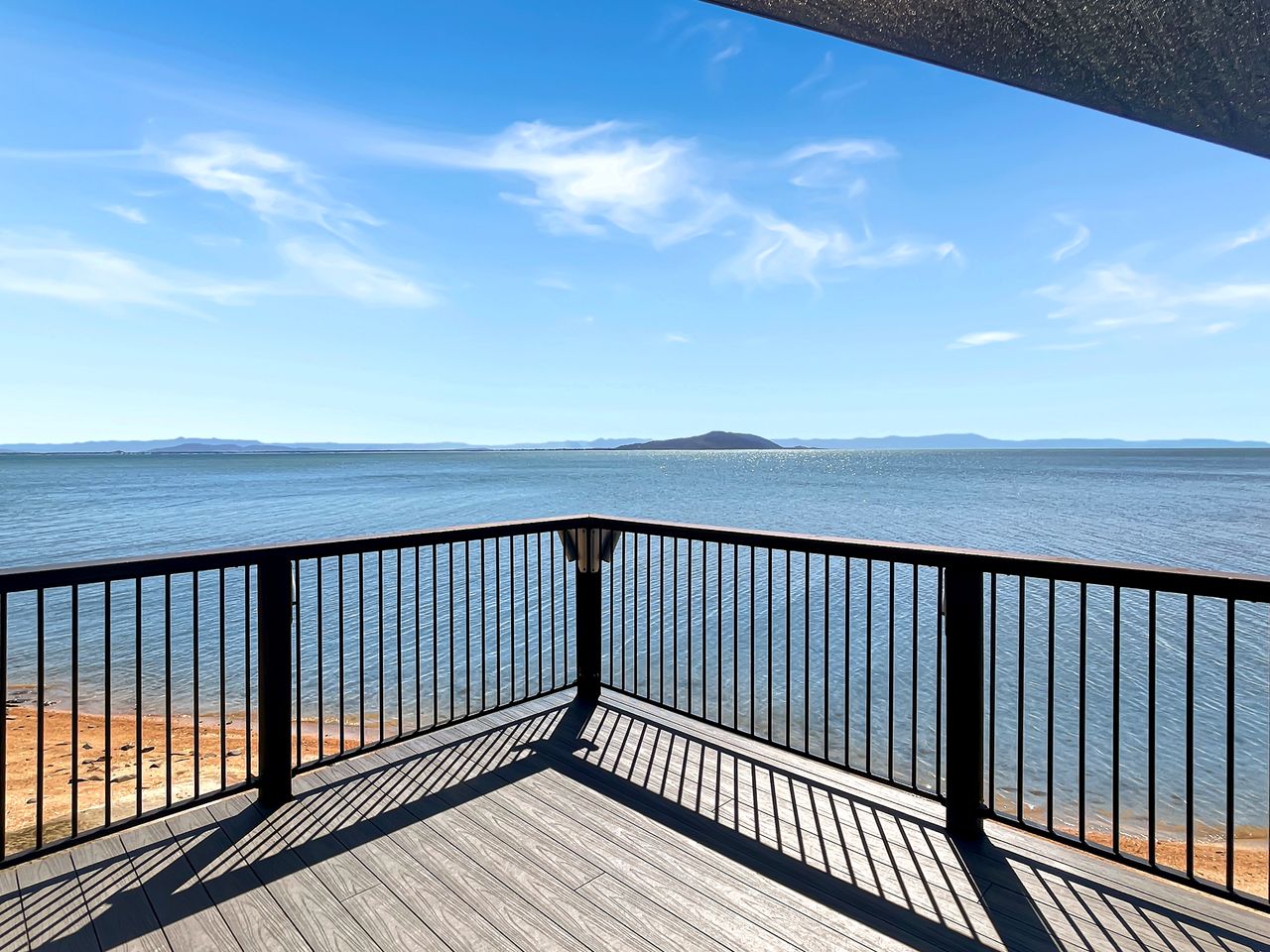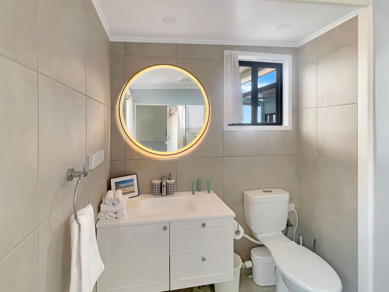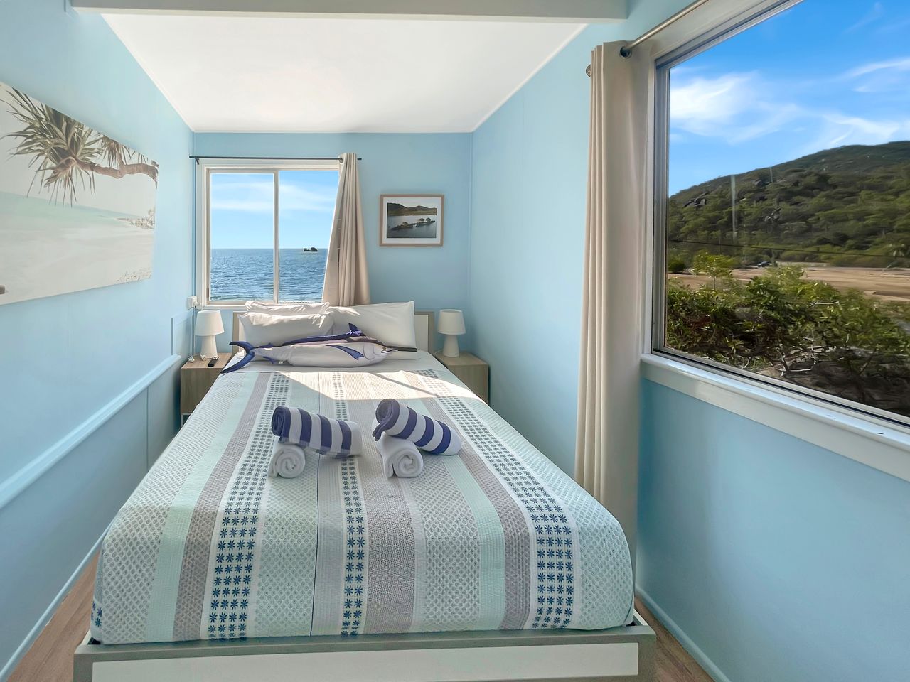Water views from every vantage point of this unique beach hut. Also included is a deck with sunset views to die for while cooking the daily catch on the barbie.