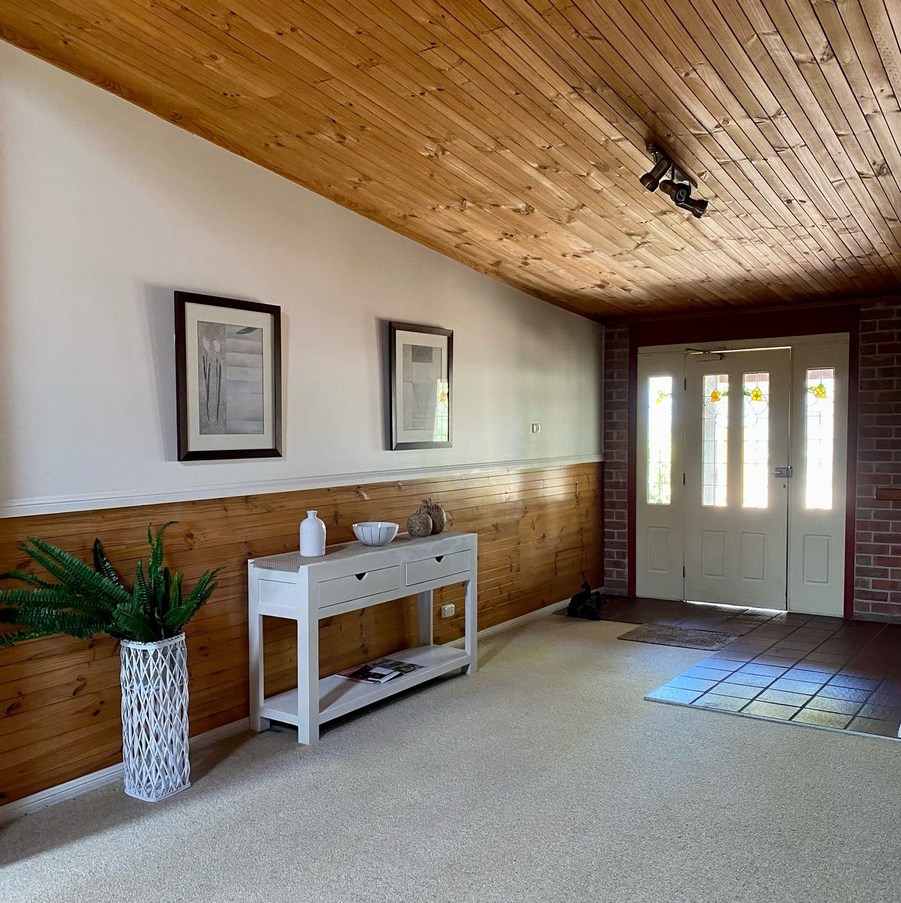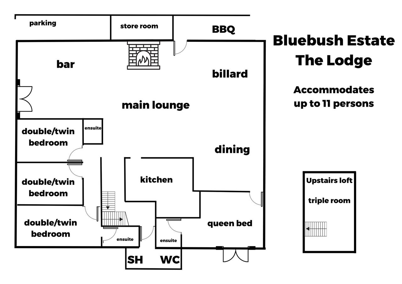 The Lodge has 5 bedrooms with a choice of king/queen/single beds, 4 bathrooms (3 en-suites plus 1 shared bathroom). The very spacious living area with high cathedral ceilings has a double gas log fireplace, 46″ LCD LED Large Screen TV/DVD, iPod docking station, reverse cycle air conditioning, built-in bar with bar fridge and seating. There is also a full size billiard table. The large kitchen is fully equipped, and the covered outdoor entertainment area has BBQ facilities and overlooks the full size tennis court and saltwater pool.