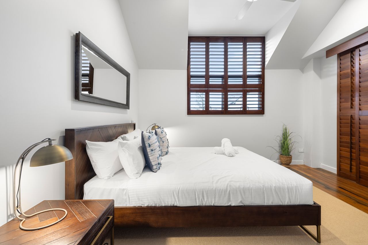 The main living space is on the middle level. The open layout features an air-conditioned lounge area with home theatre-styled entertainment centre, dining table and a full kitchen with professional grade, stainless steel appliances including a dishwasher, 5-burner oven, full size fridge/freezer, wine fridge and a Nespresso machine. WIFI is included. The house offers guests the best in quality furnishings with recycled hardwood floors, high ceilings and stylish, functional fittings.