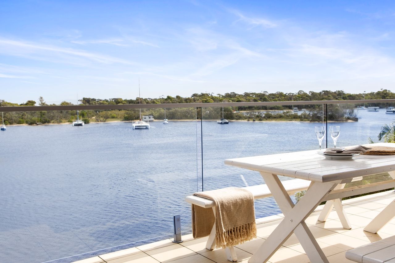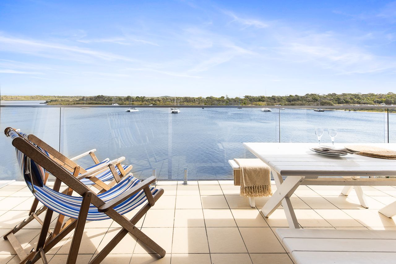 The bedrooms are comfortably appointed, including a main bedroom with an ensuite and air conditioning. Guests will also enjoy practical conveniences such as internal laundry facilities, WiFi, and secure garage parking with height restrictions apply. The property includes access to a communal pool in the building as well as a jetty but please note that mooring is not allowed.