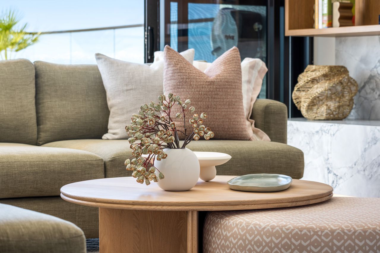 The furniture and styling is designed for opulence and functionality in the open plan, living/dining room and are almost as breathtaking as the sparkling aquamarine ocean vista.