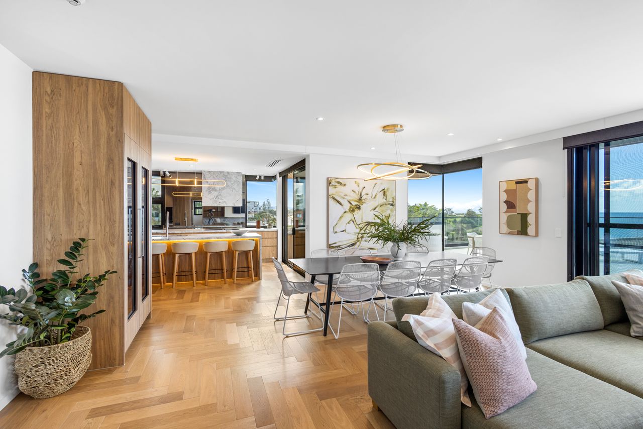 Open plan living and dining flowing out to a massive entertaining rooftop terrace, with large BBQ, aged teak lounge, sun lounges, dining table, perfect for relaxing while drinking in the stunning ocean views.