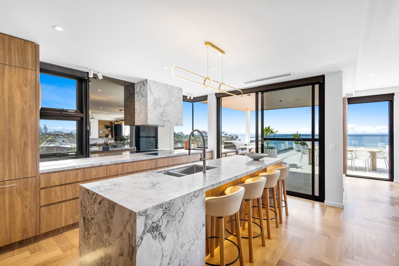 The premium kitchen with marble benches and butler’s pantry features Gaggenau appliances, which include induction stove top oven, microwave, dishwasher, integrated fridge and wine fridge. This is a cooks dream kitchen, enjoy fabulous ocean views while preparing meals.