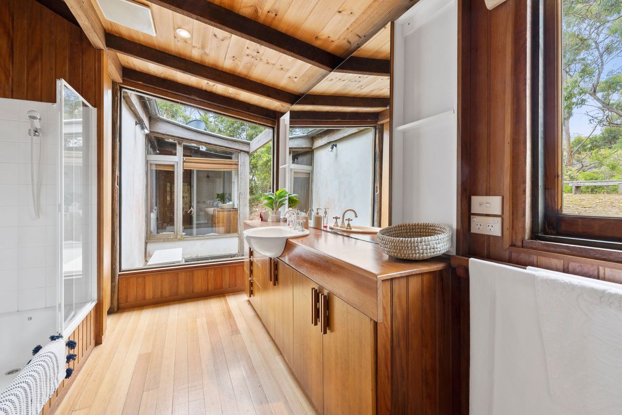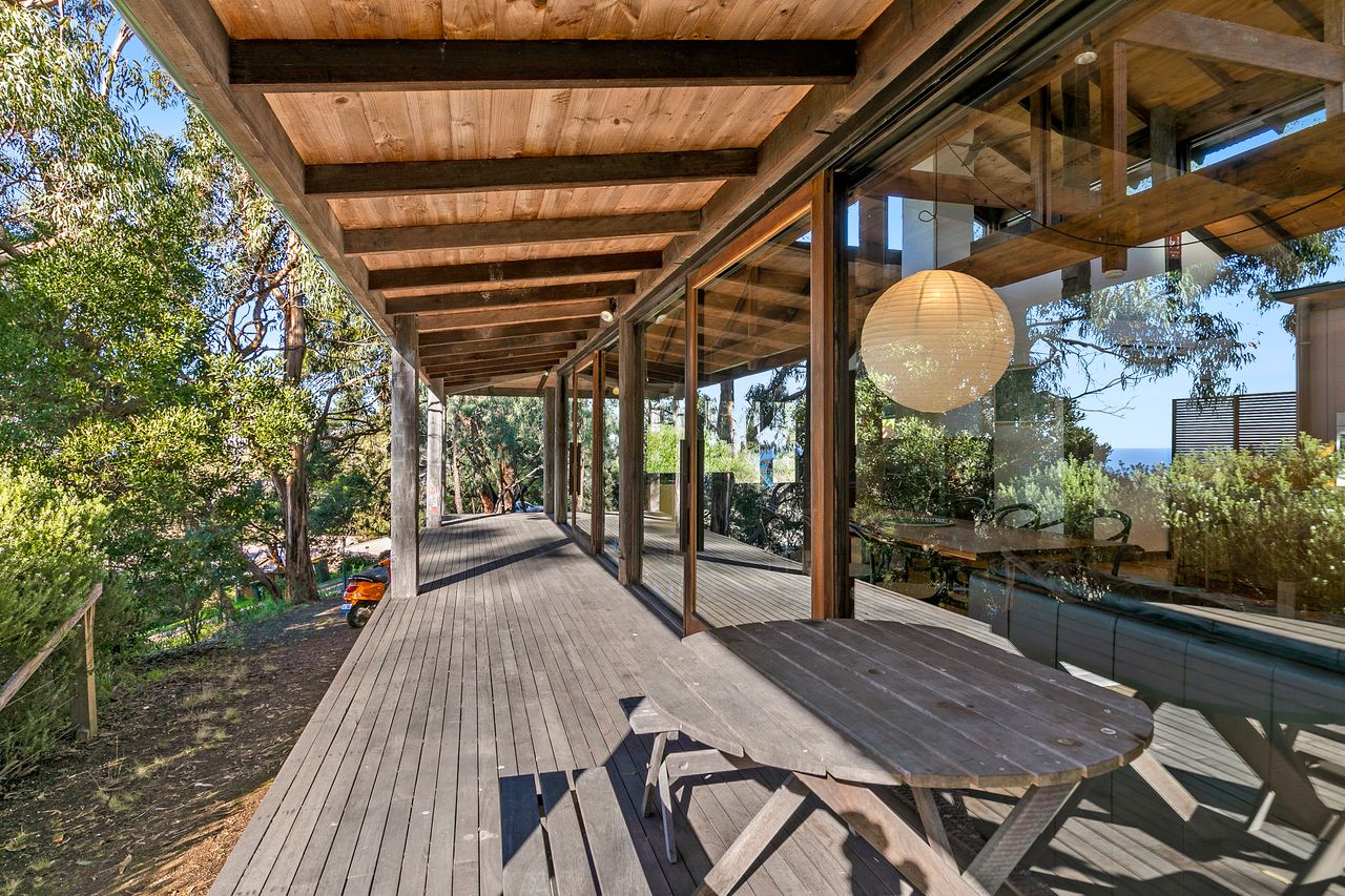 Three large bedrooms and two bathrooms flank the main living space. The master – with ensuite – offers ocean views from your pillow, while the 2 back bedrooms take in a spectacular bush outlook. It is not uncommon to wake to grazing kangaroos, a passing echidna or a visiting koala, and the home’s soundtrack is a symphony of native birds.