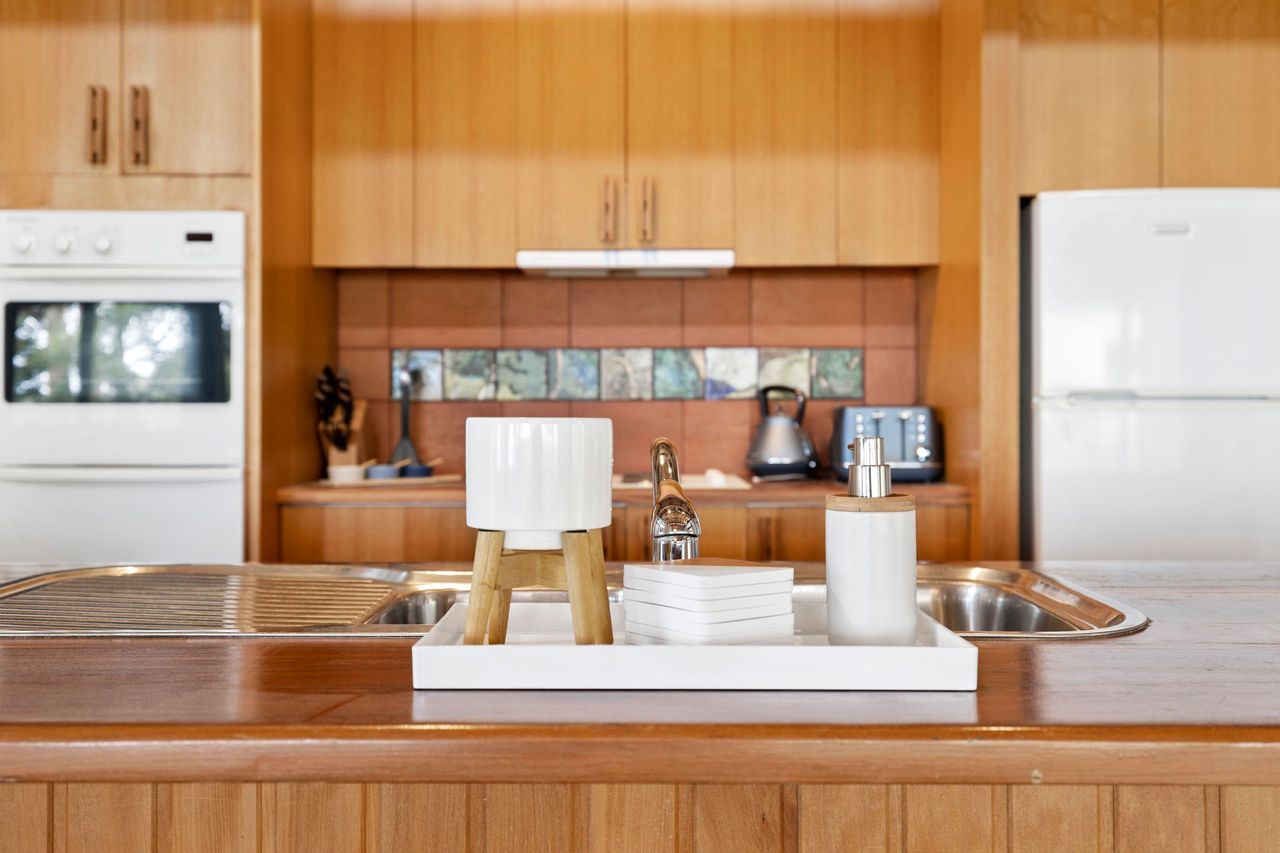 A 10-minute downhill walk into Lorne provides access to the town’s vibrant food and retail options, with abundant choices of bush walks, waterfalls and wildlife literally on your back doorstep. If you’d rather stay in, the outdoor kitchen overlooking the Erskine River valley includes a charcoal barbecue and pizza oven.