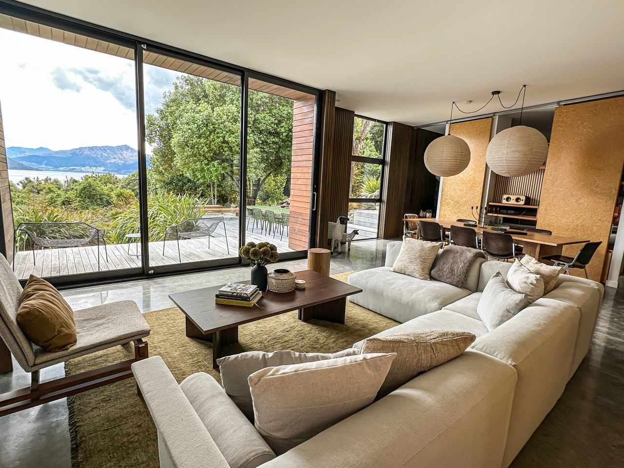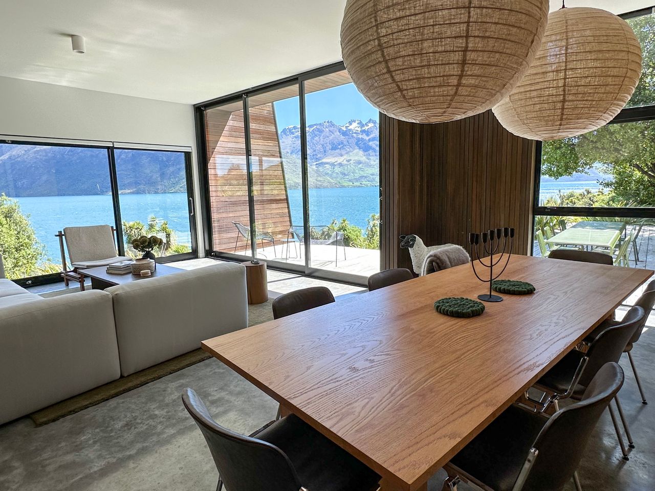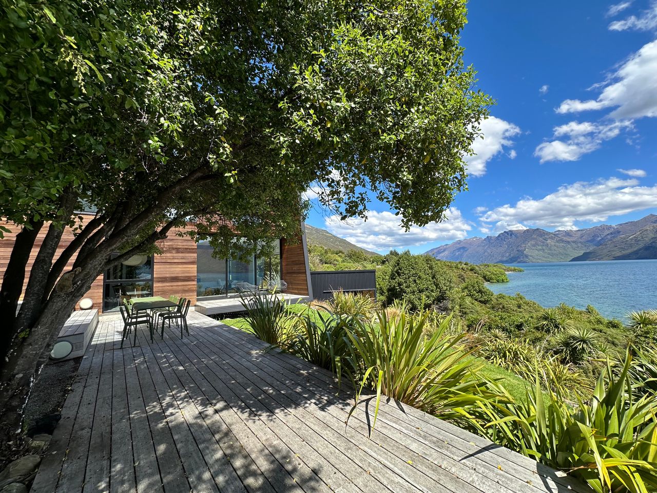 This architecturally designed 5 bedroom, 4 bathroom home is nestled in a prime location on the shores of Lake Wakatipu, Queenstown, this residence seamlessly blends modern architecture with the beauty of a native bush environment.