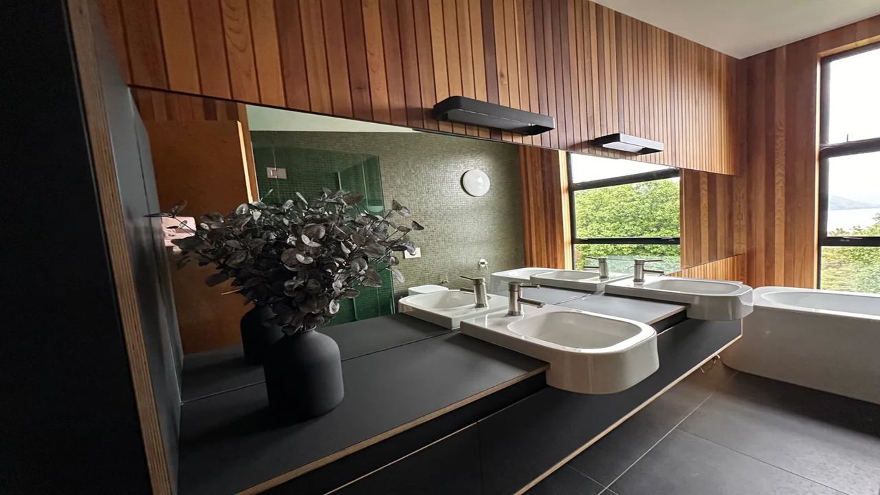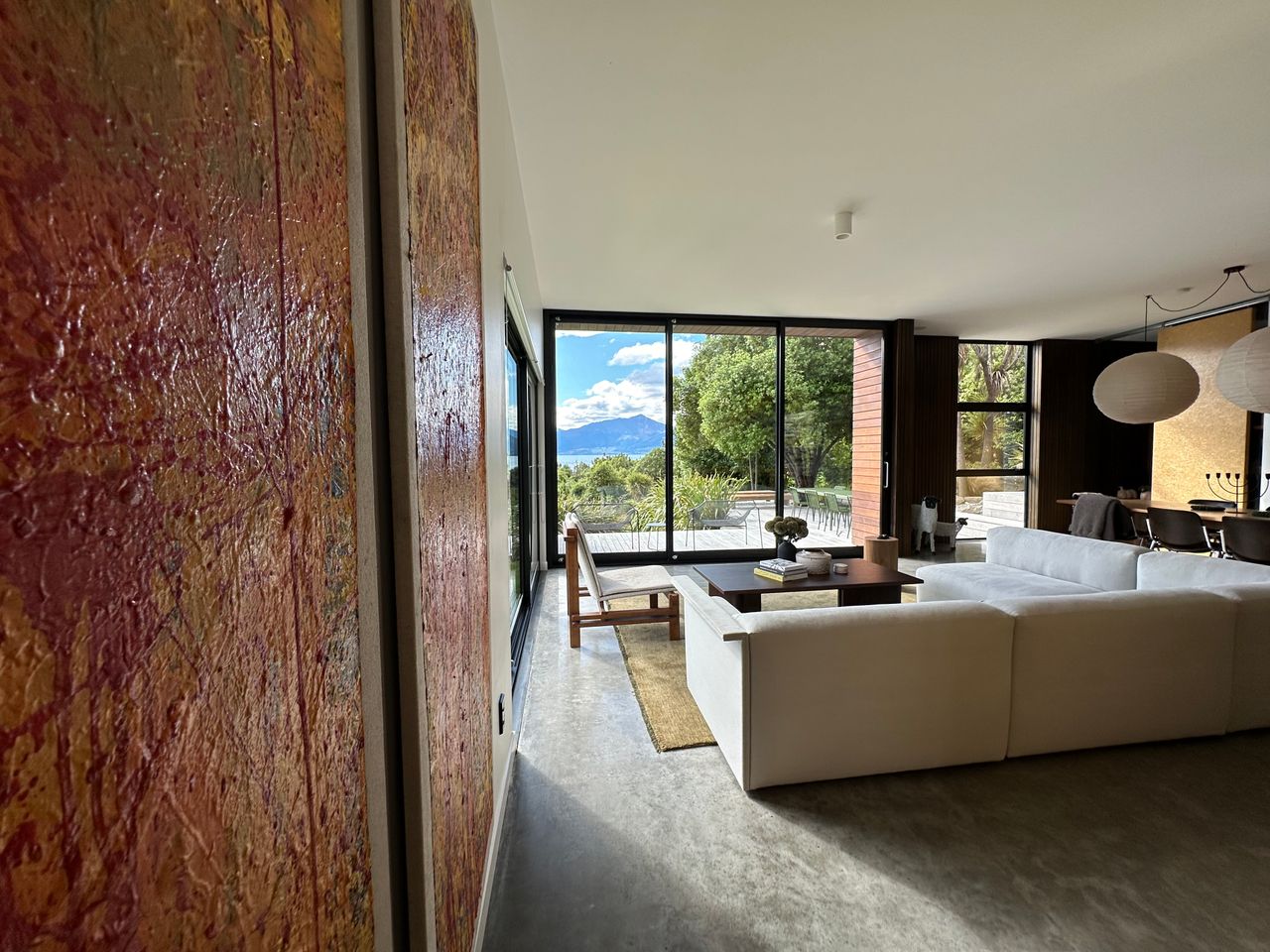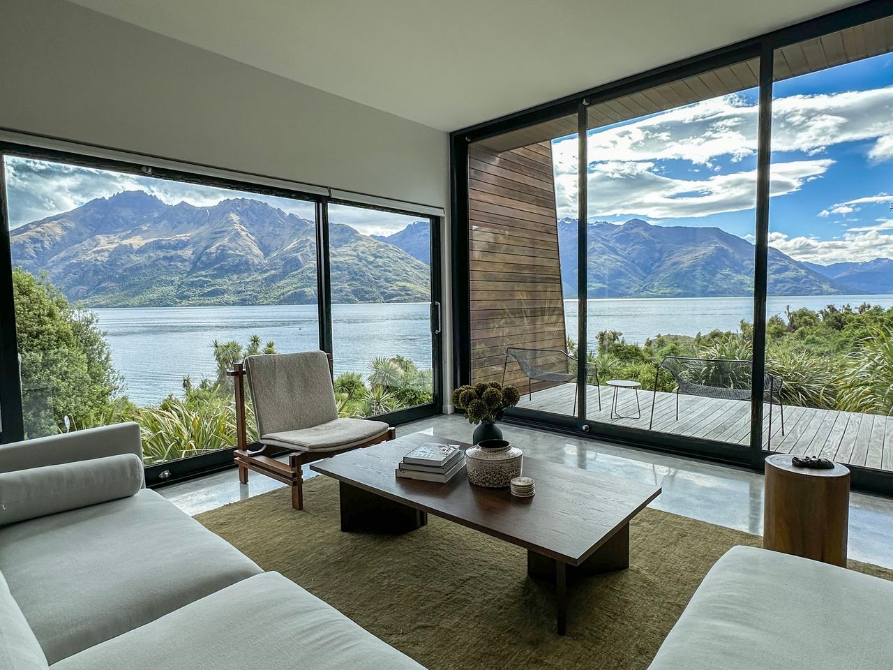 This architecturally designed 5 bedroom, 4 bathroom home is nestled in a prime location on the shores of Lake Wakatipu, Queenstown, this residence seamlessly blends modern architecture with the beauty of a native bush environment.