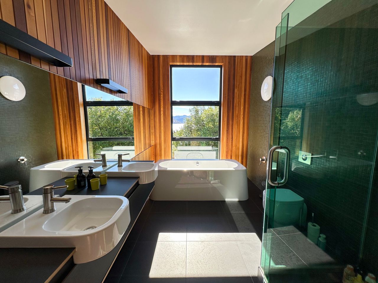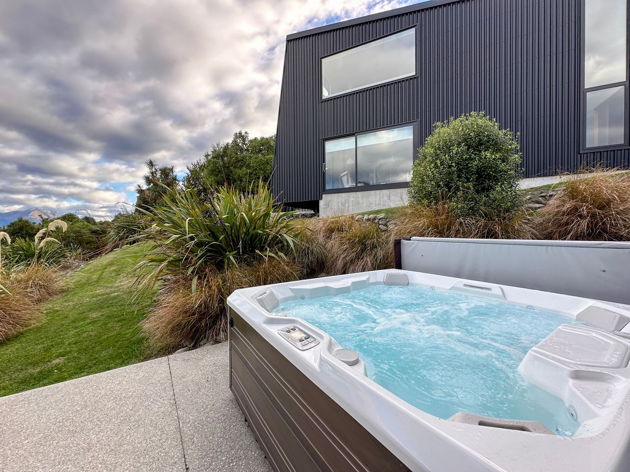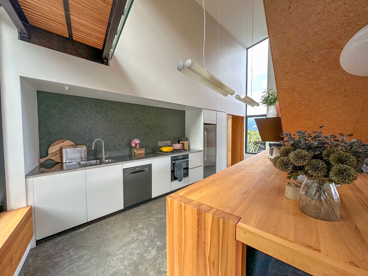The house is not only in a secluded spot with stunning views it is packed full of features from its spa pool, sauna, fire pit, outdoor deck to its bath with a view, separate work area and access to the lake (via a bush walk).