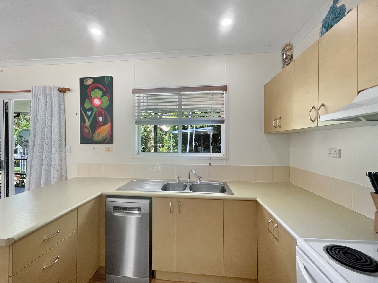 Inside, the cottage features a comfortable open-plan living area designed for easy downtime after a day of island adventures. The home is fully air-conditioned and ceiling fans throughout, ensuring year-round comfort. The kitchen features a microwave, oven, convection oven and a brand new slimline dishswasher.
