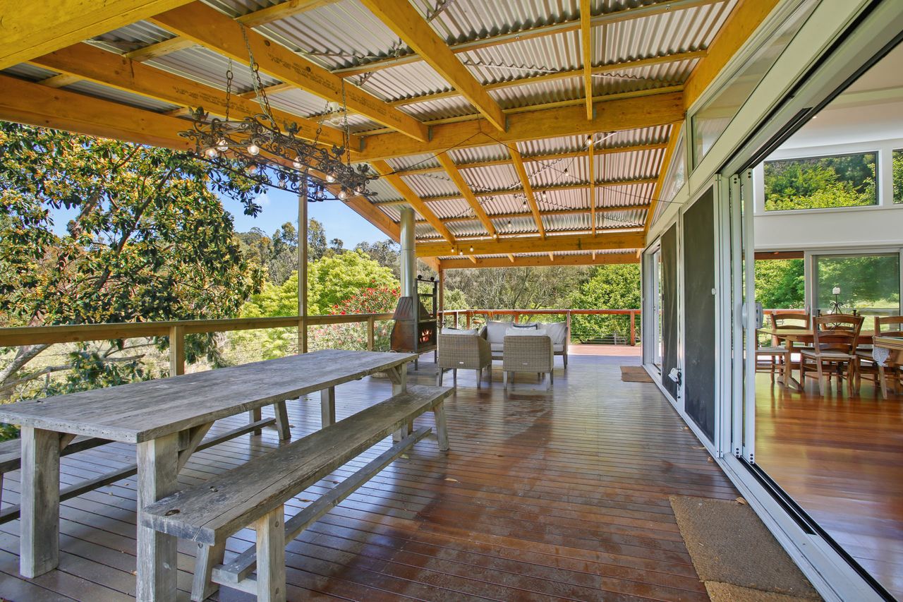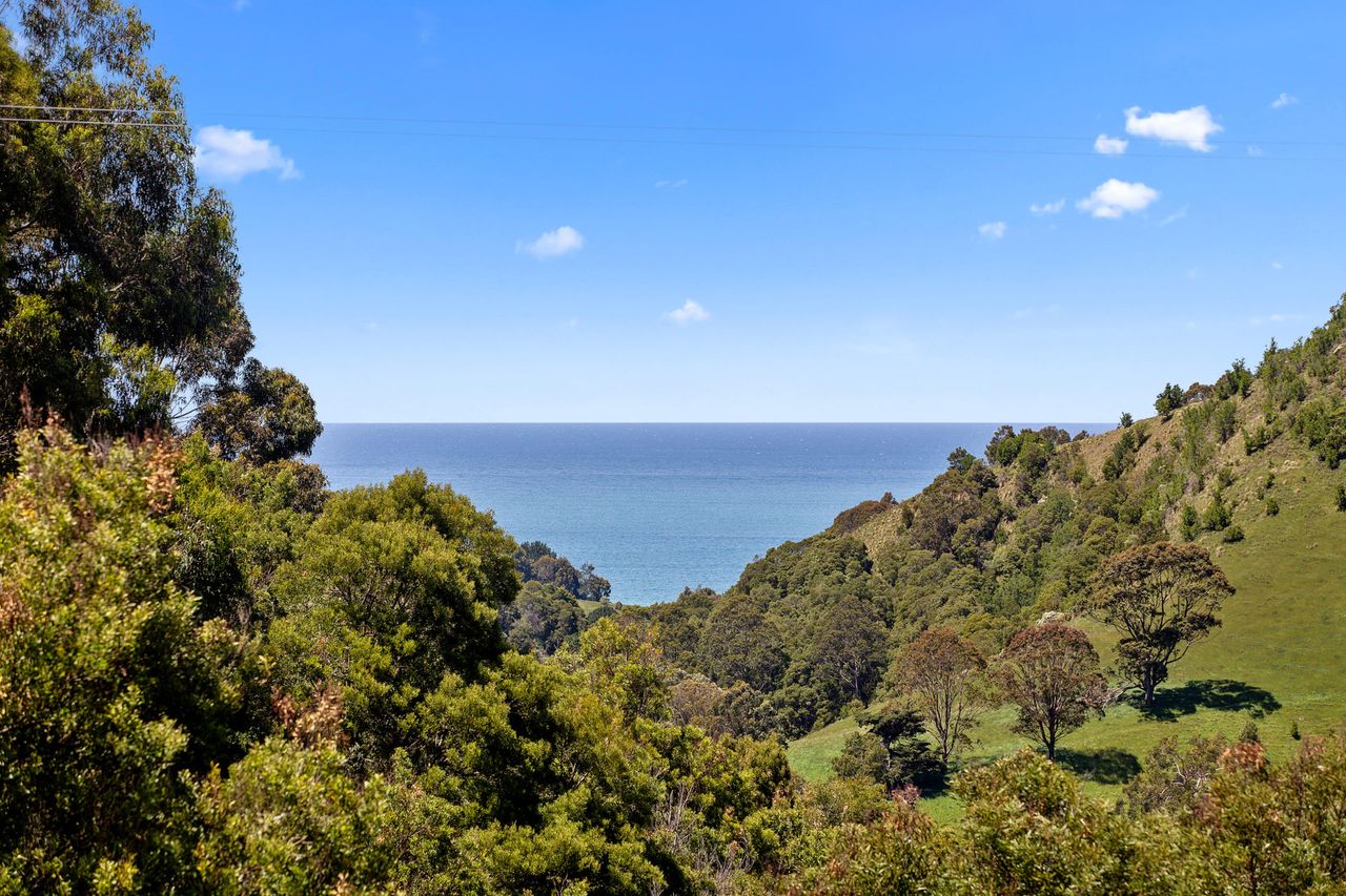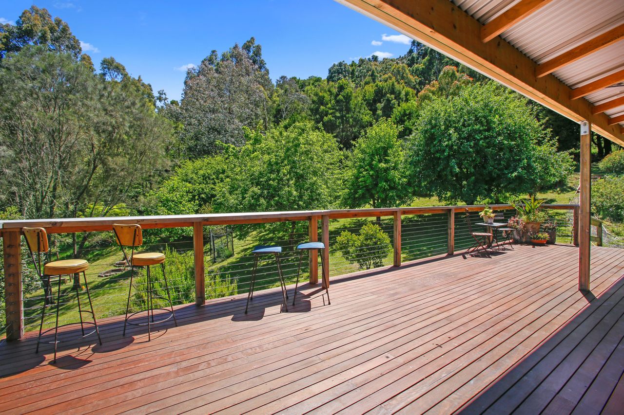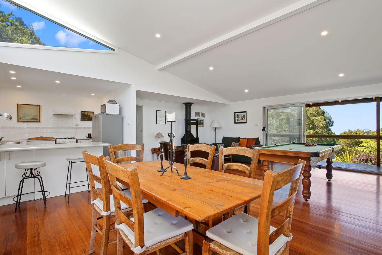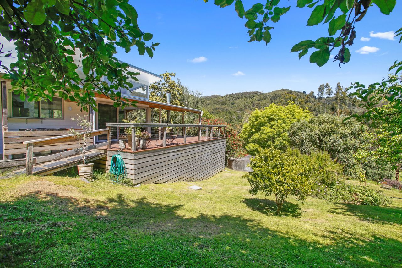 Cooinda is on 10 acres of steep terrain at the edge of the Otways rain forest, perched high in the hills with views through to the ocean. Wild Dog Creek meanders down the gully spilling into the sea at Pirates Cove.