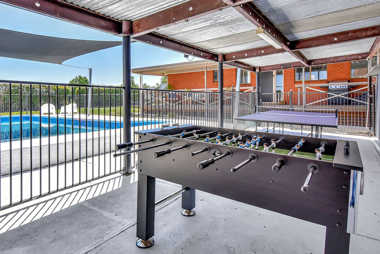 Enjoy a variety of entertainment facilities near the pool area, including a table tennis table and a soccer table, perfect for family fun. A fire pit is also available for cozy evenings under the stars.