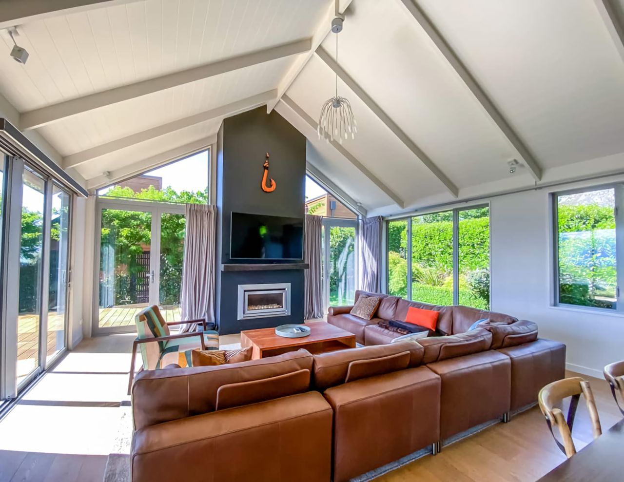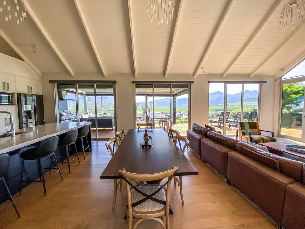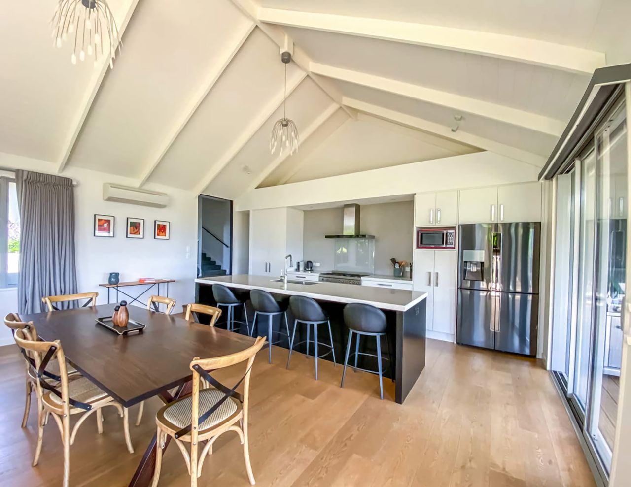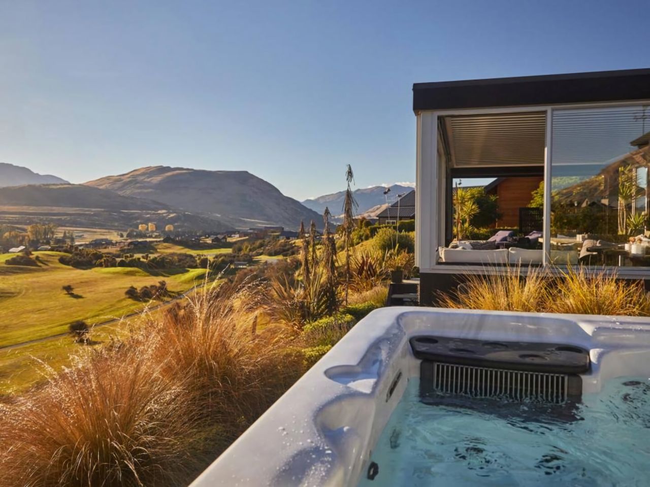 The open-plan kitchen, lounge and dining room leads to an impressive al fresco living area with breathtaking views. The master bedroom opens onto another deck area which boasts a spa pool for you to relax in after a busy day exploring, golfing, biking, hiking or skiing.
