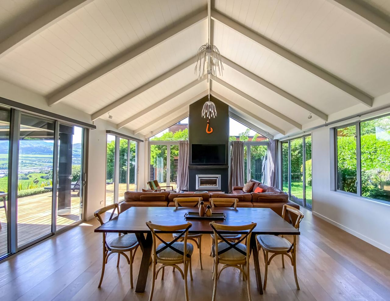 When you walk into this stunning home one of the first things that strikes you is the views. The open plan kitchen, dining & lounge area have windows and sliding doors all sides to take full advantage of these views.