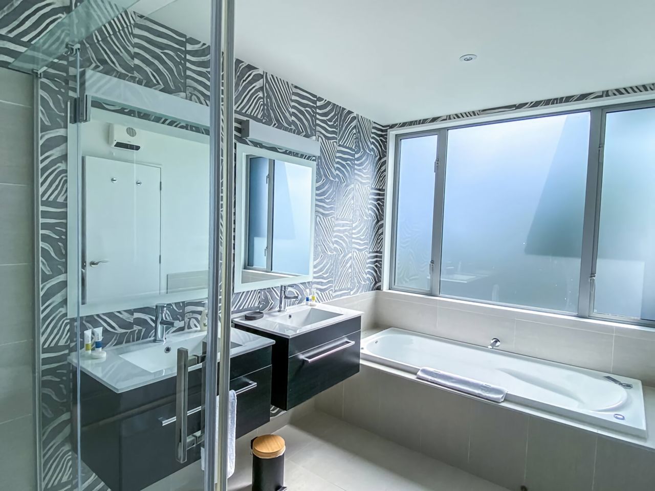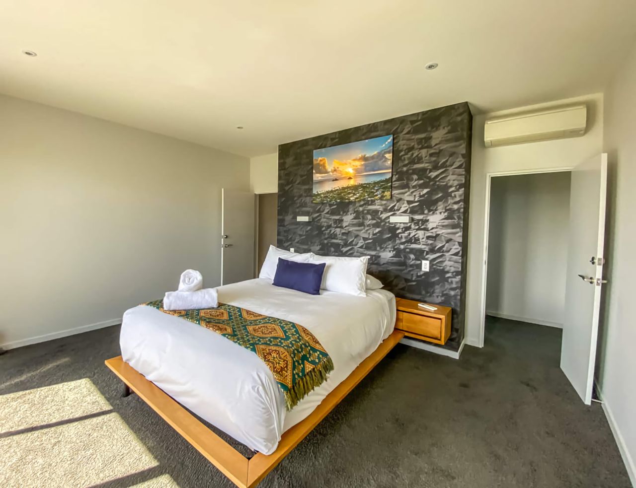 The other great feature is the size of the bedrooms. The Master bedroom has a walk in robe along with an ensuite which includes double basins, a toilet, bath & separate shower. There are also sliding doors that open onto a deck with access to the spa pool. Bedroom 2 also has its own ensuite and can be setup with either 2 singles or 1 Superking bed giving you great sleeping options depending on your groups requirements. Bedroom 3 has a Queen bed and shares the main bathroom, Bedroom 4 has a single bed with option of a trundle it also doubles as a study with a work desk in it Please note that Bedroom 2, 3 & 4 have garden views only. There is also a separate powder room next to the main bathroom.
