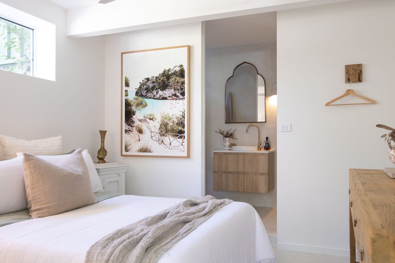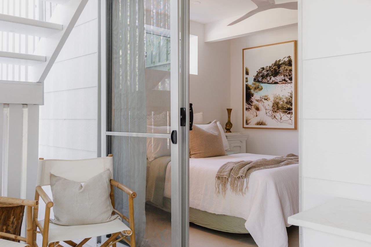 Inside, the house boasts three beautifully appointed guest bedrooms spread across two levels. Upstairs, two bedrooms feature a balcony and garden access, while downstairs, separate accommodation (there is no internal access between floors) includes a fully ait-conditioned cozy bedroom and ensuite with courtyard access, perfect for adults getaway with privacy and relaxation. The living spaces are ample and open, complemented by a large verandah overlooking a scenic reserve, ideal for unwinding with a view. The kitchen is fully equipped with modern appliances, ensuring all culinary needs are met. Outdoors, guests can enjoy a fenced garden area featuring a timber deck perfect for alfresco BBQ and dining. An outdoor hot and cold shower provides a refreshing post-beach rinse, while a fire pit invites guests to cozy up under the stars (please bring your own wood)