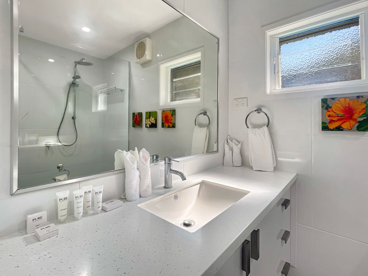 Totally renovated, modern, self-contained unit that is simply stunning. As well as the fabulous views over Geoffrey Bay Beach it is just so handy to all of Arcadia’s facilities and shops.