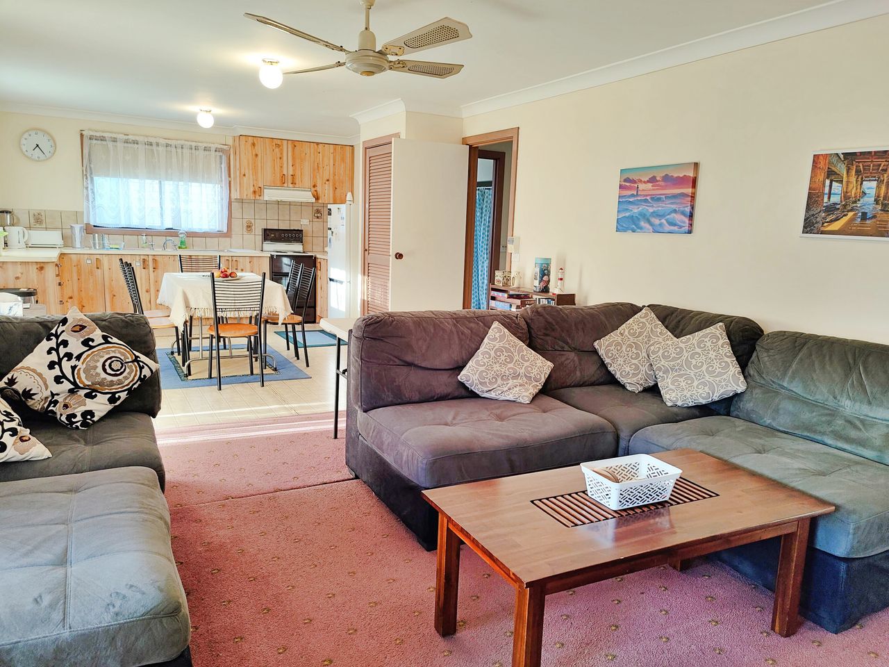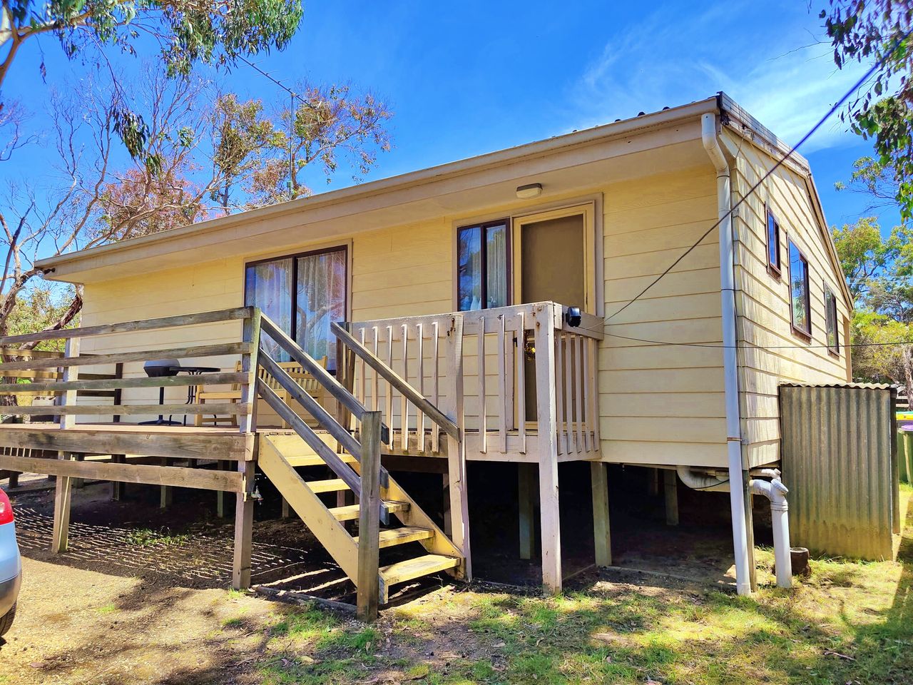 The cottage features two bedrooms, an open-plan living and dining area, a functional kitchen, and a large backyard ideal for kids to play or for unwinding after a day at the beach. It’s comfortable and practical, with everything you need for an easy coastal break.