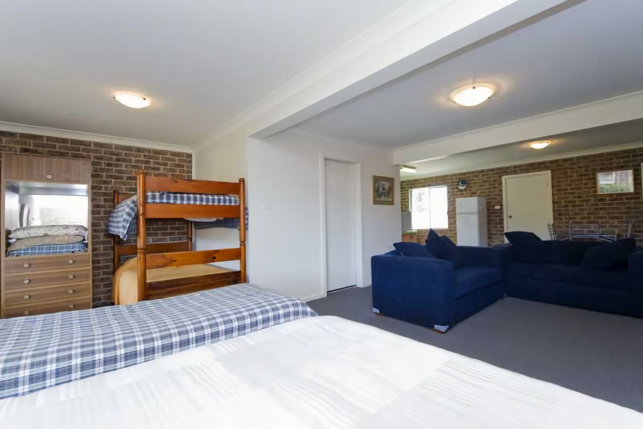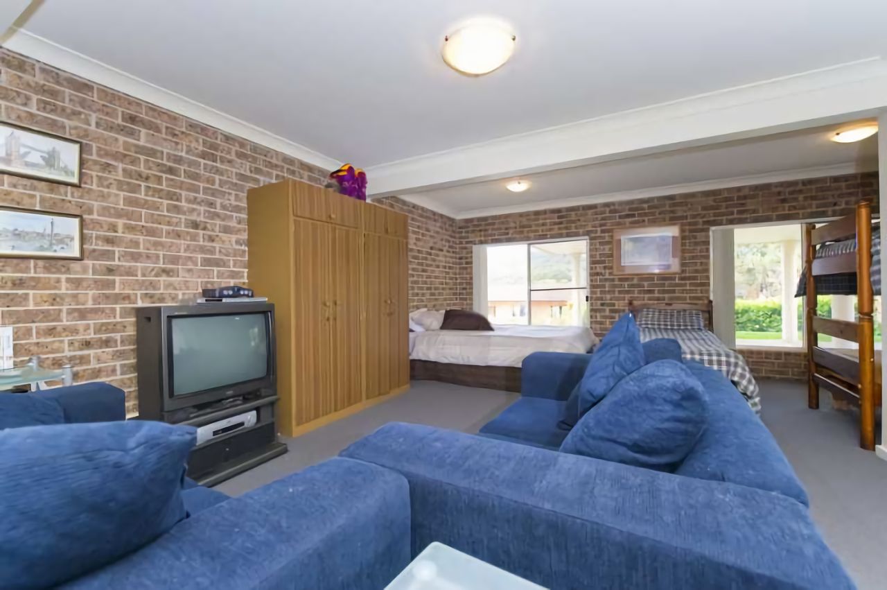 Downstairs there is a self contained flat that has one set of bunks,two singles, small living area, a kitchenette and a separate shower/toilet, a little kids retreat.The laundry is also downstairs off the drive-through single garage. The property also has two off street covered parking spaces.