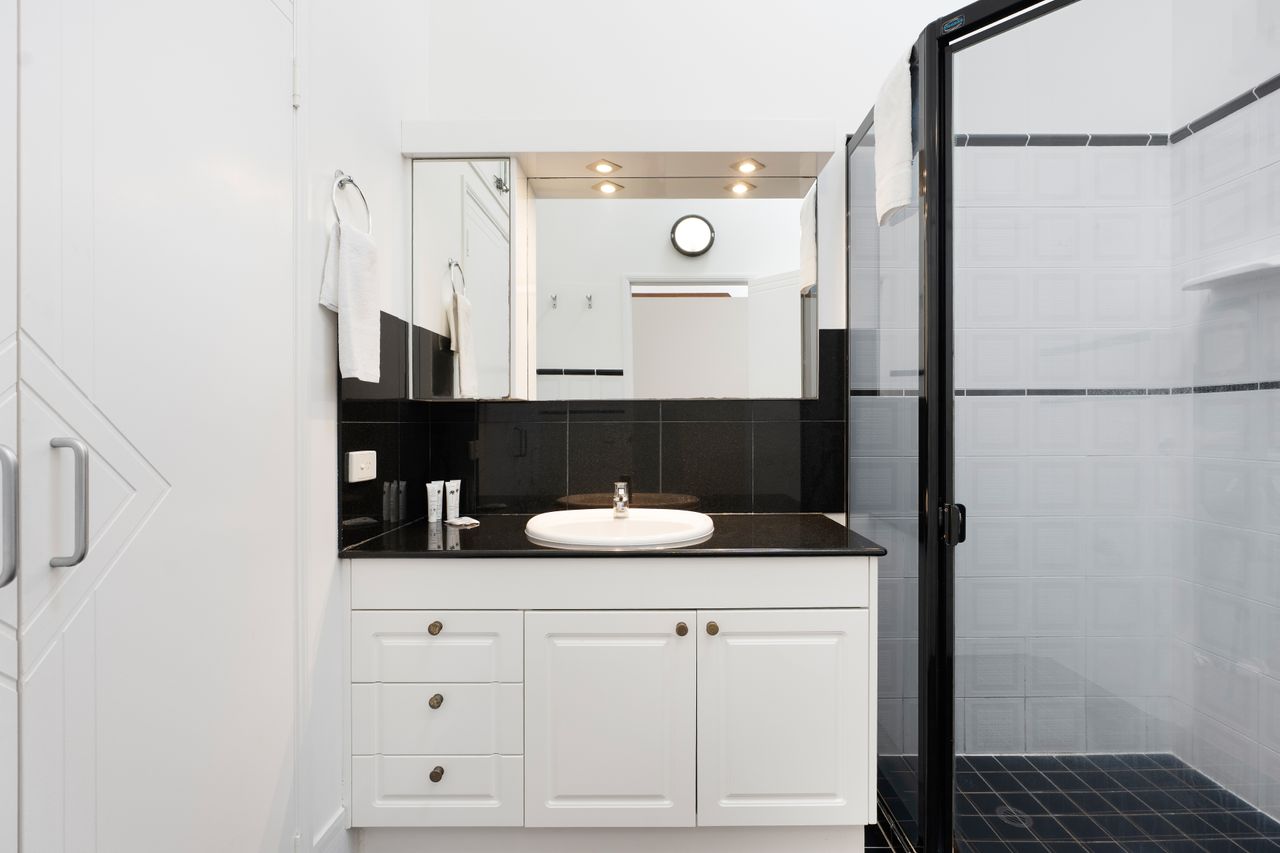 The main bedroom has a double bed, 2 bedside tables, lamps, and ceiling fan. The second bedroom has built-in robes, bedside table and lamp, ceiling fan, and King singles. The family bathroom offers shower with glass doors, vanity, toilet and full laundry facilities including washing machine and clothes dryer. There is a set of stairs of more than 25 steps up to the apartment, there is no lift. There is access to the apartment on the side of the building as well as through the back of the building. (The back access goes directly into the second bedroom).