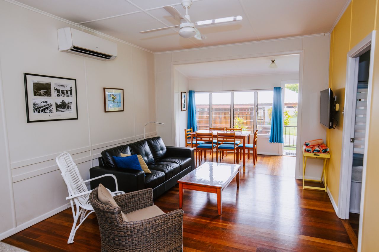Kooyong unit 3 features 2 bedrooms and is located at the front of the complex shaded by the raintrees on Hayles Avenue. The main bedroom features a queen bed and the 2nd bedroom features a tri bunk (double bed on the bottom and single on top) The unit is fully self contained, air conditioned and features free WiFi. Kooyong Holiday Apartments are strolling distance to the local newsagent, Arcadia store, and the Hotel Arcadia and the beautiful Alma Bay, a family beach with playground, BBQs and shade! Bremner Point is within walking distance where our friendly rock wallabies are happy to pose for a photo.