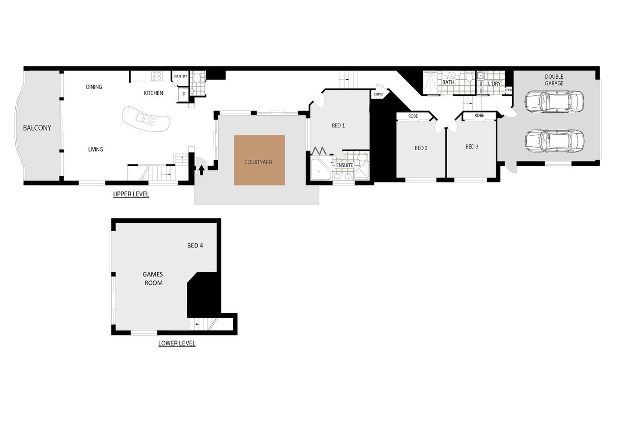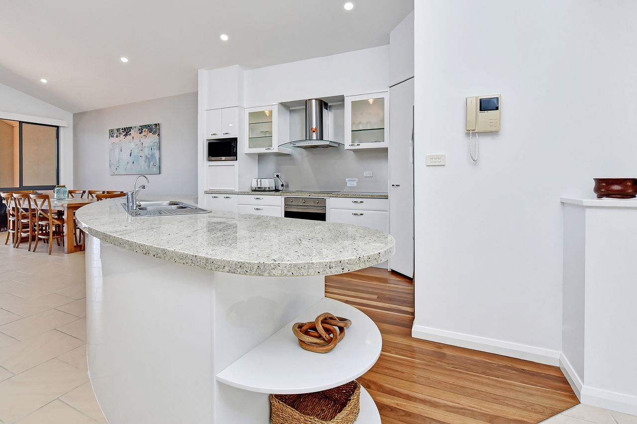 Inside, the home boasts an expansive open-plan layout featuring a modern granite kitchen, generous living and dining areas with A/C and 65” TV, and seamless flow to both a central private courtyard and a lakefront entertaining patio. A versatile rumpus room with lounge, Smart TV and table tennis table serves as the perfect kids’ retreat or chill-out zone.