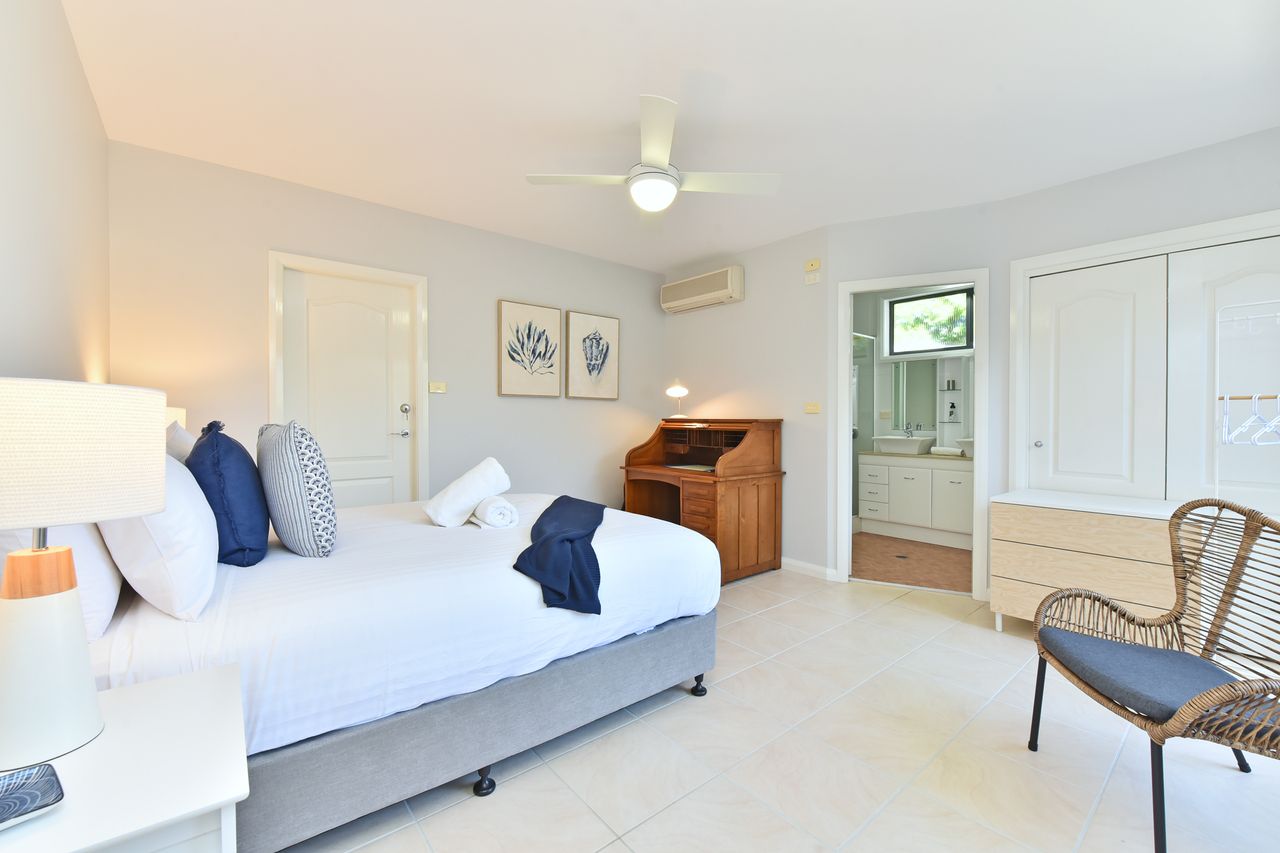 Bedroom 1 : Queen, En-suite, Ceiling Fan, A/C, draws and portable robe