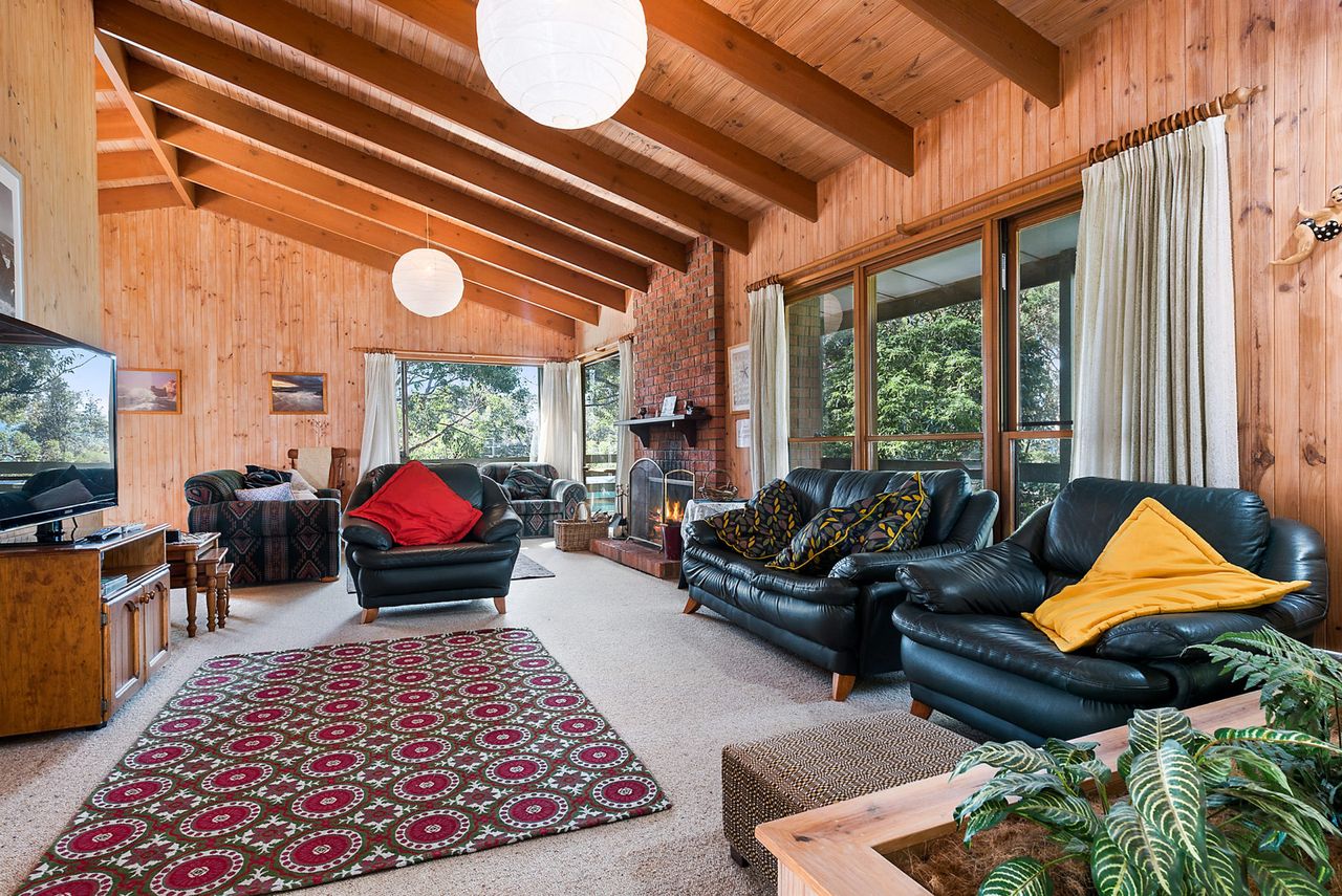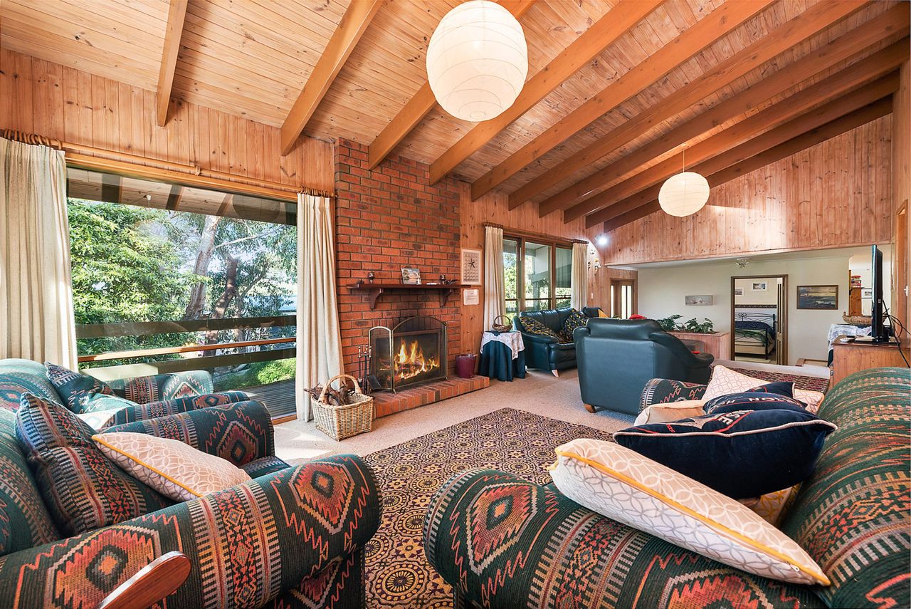 First living area with open fire place. Wood is NOT provided please BYO or purchase in Apollo Bay.