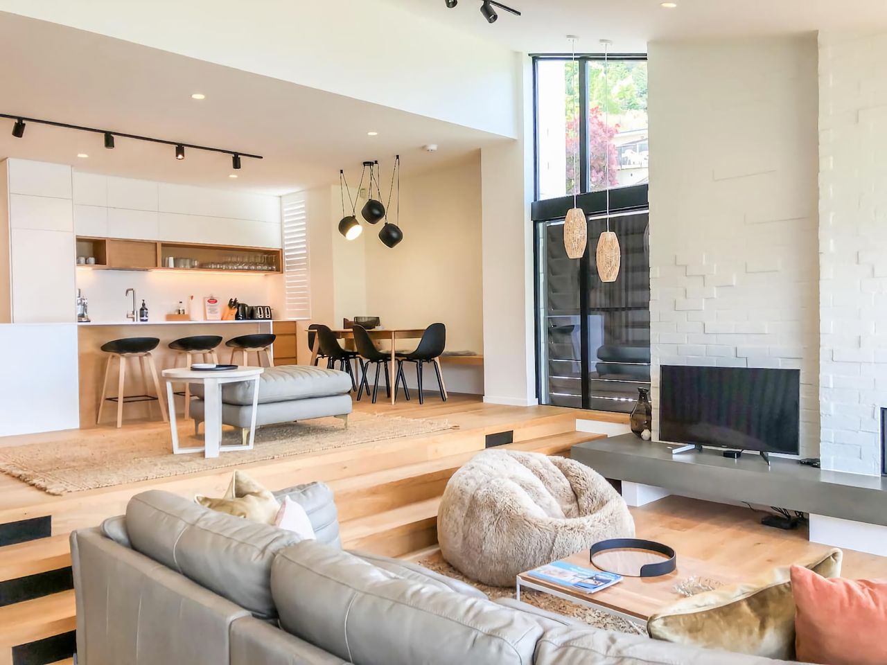 Modern contemporary design set across multiple levels well suited for families or couples that want to relax and unwind in a prime Queenstown location.