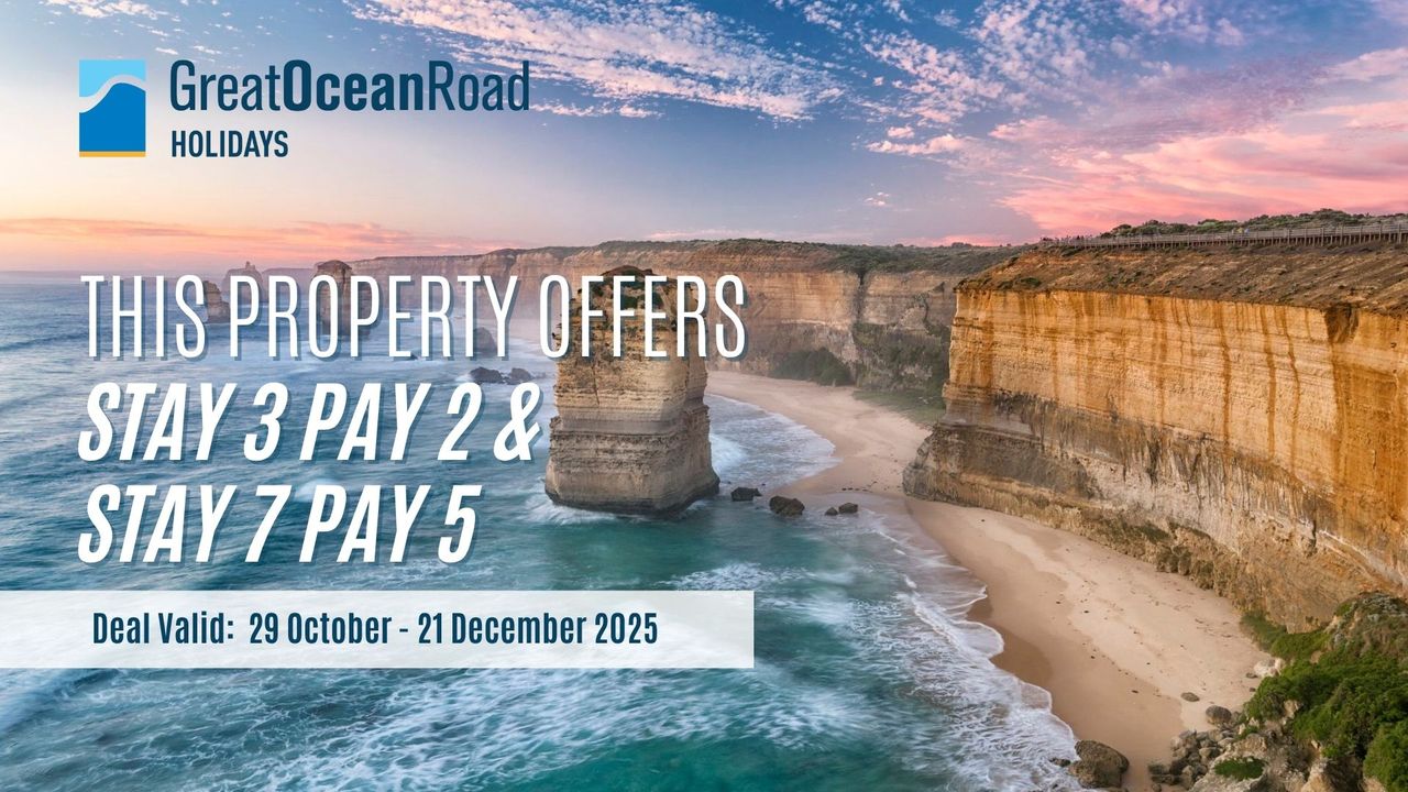 This property offers STAY 3 PAY 2 & STAY 7 PAY 5 deals from 29 Oct – 21 Dec 2025.