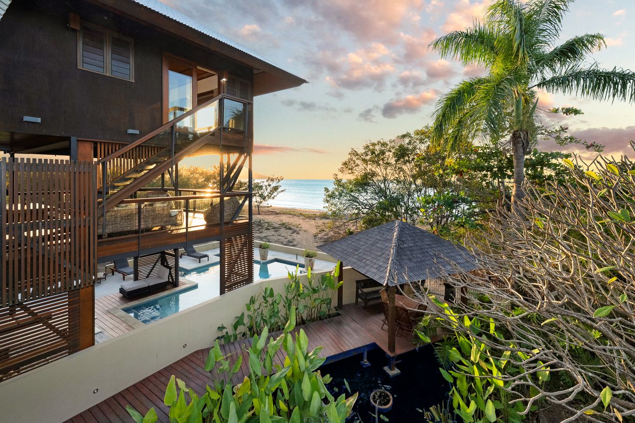 The luxurious Lotus House is set on an amazing, absolute beachfront position. Literally walk off your deck onto the sand and down to the oceans edge.