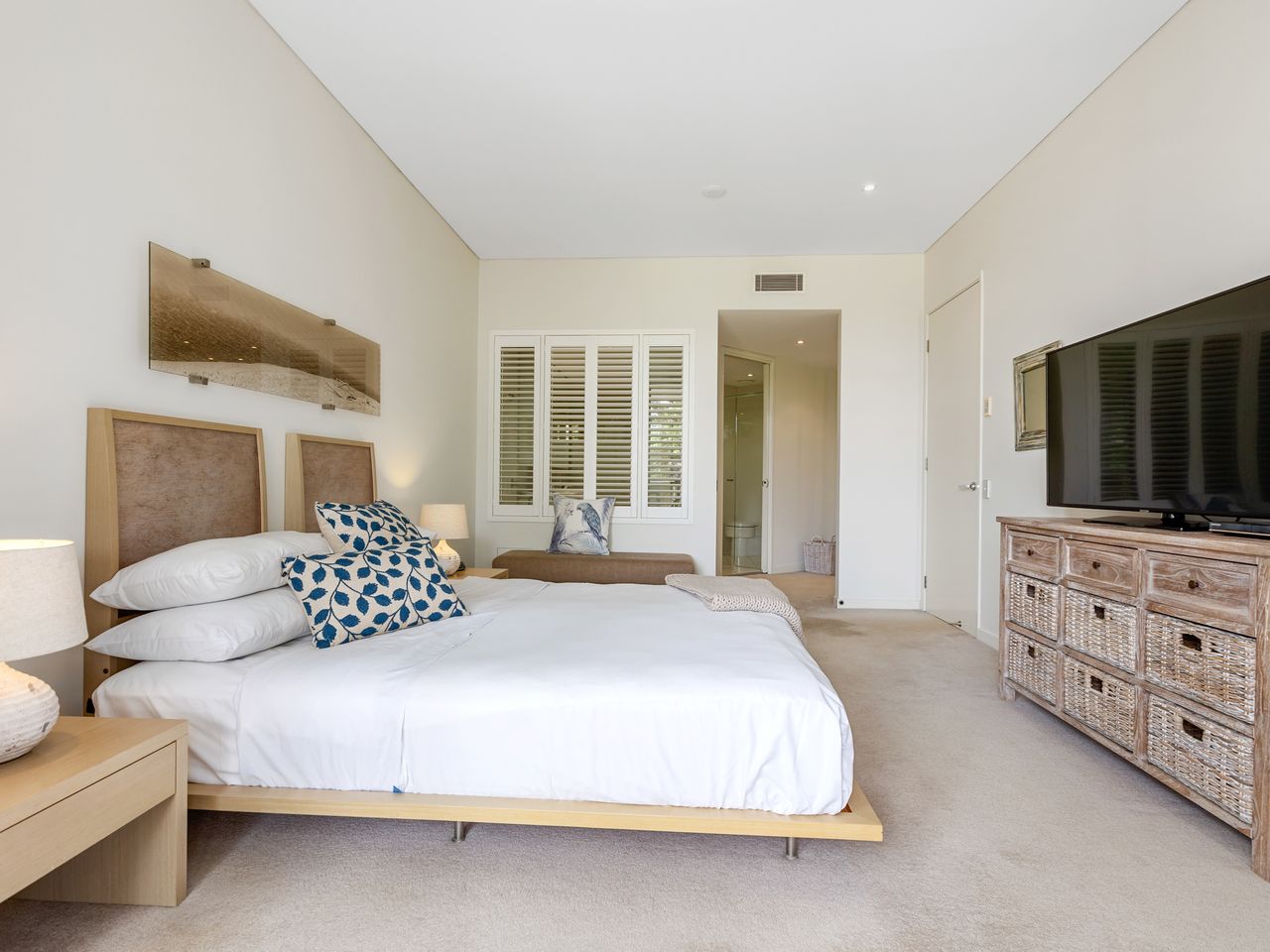 The thoughtfully designed interior features a chef-inspired kitchen with spacious island bench, excellent for casual meals or preparing family feasts. Three well-appointed bedrooms comprise two with king beds and a third with two king singles, comfortably housing up to 6 guests. The apartment also includes three stylish bathrooms and secure basement parking with lift access.