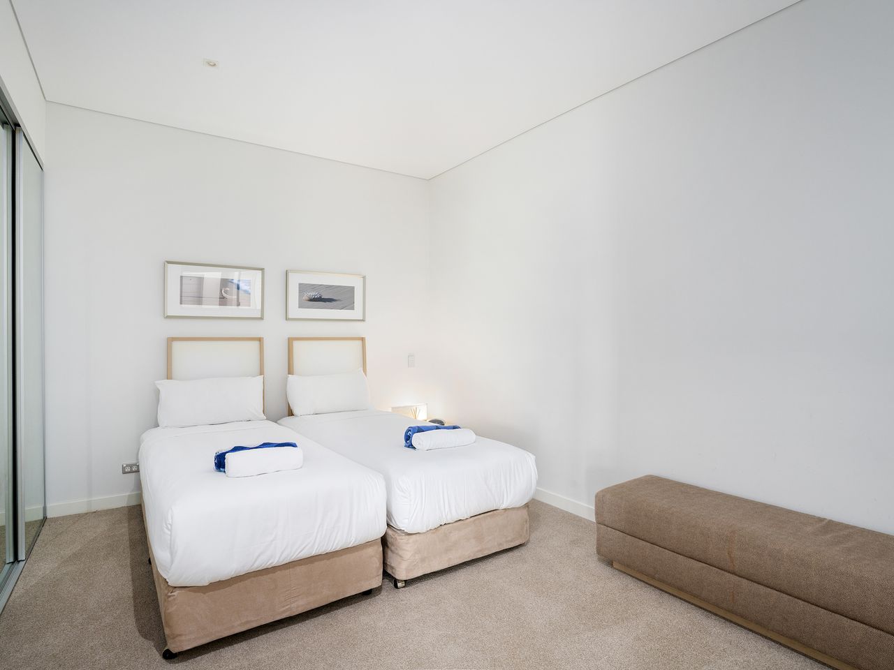 The master bedroom provides a luxurious retreat, complete with an indulgent heated spa bath for ultimate relaxation. The second bedroom accommodates 2 single beds, making this apartment perfect for small families or friends sharing a coastal getaway, comfortably housing up to 4 guests.