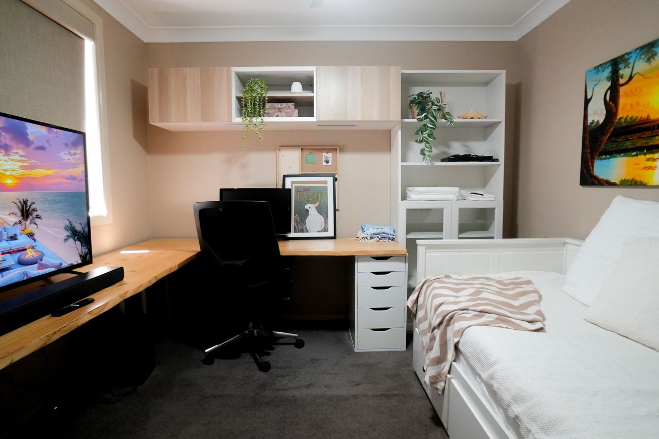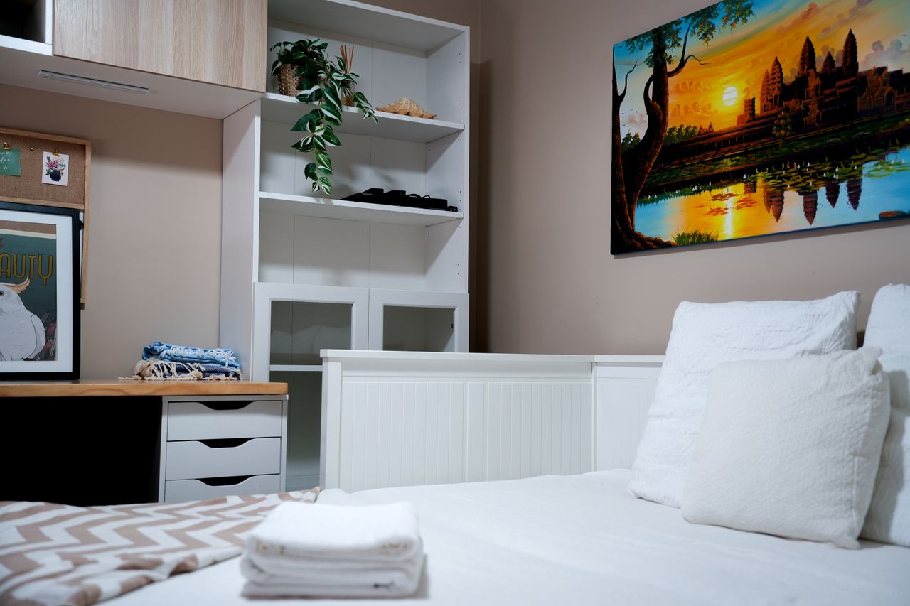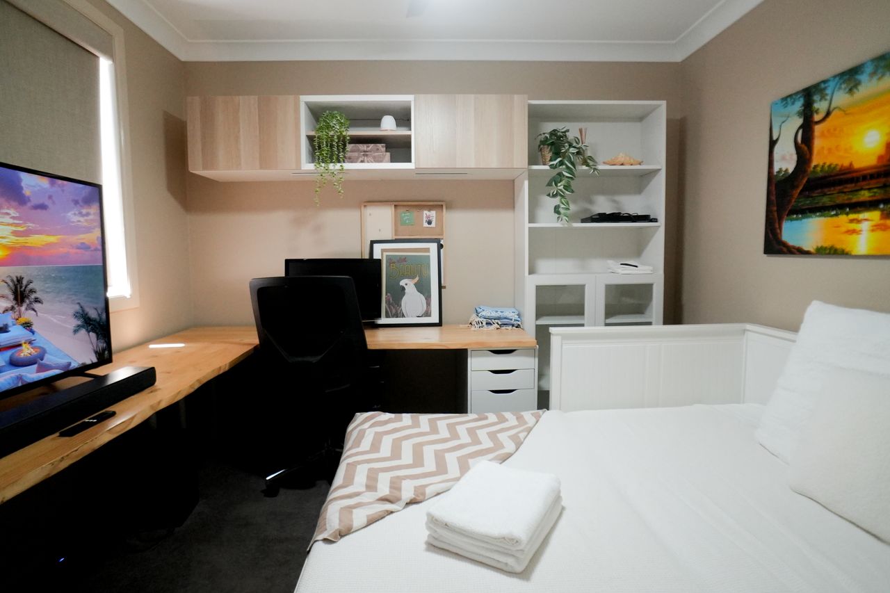 Bedroom 2: 1 Queen Bed, Study Desk, Air Conditioning, Built In Robe, Ceiling Fan